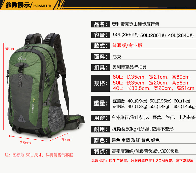 배낭 여행용 백팩 다기능 대용량 여행 가방 남녀공용 아웃도어 하이킹 등산 가방 맞춤 제작