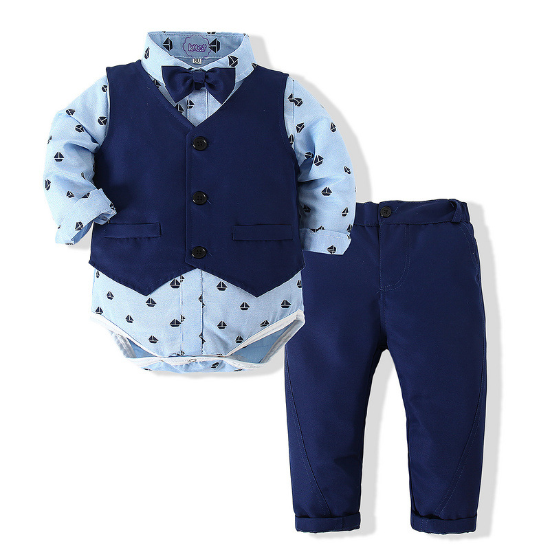 크로스 국경 제조 업체 어린이 신사 원피스 세트 봄 새 소년 긴 소매 셔츠 양복 조끼 캐주얼 바지 3 피스 세트스토어 가기