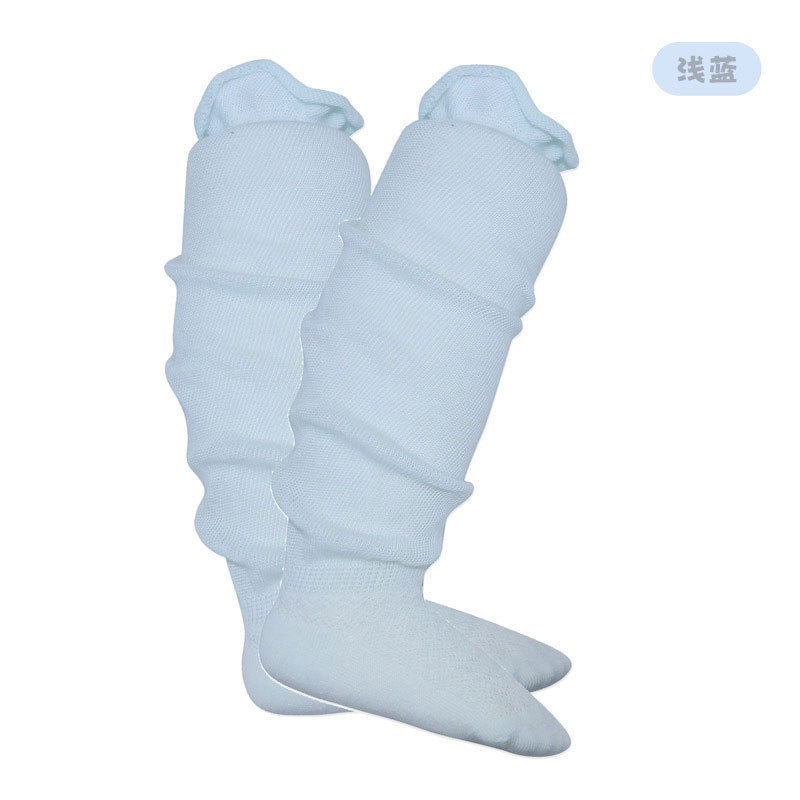 여름 초박형 느슨한 단색 아기 허벅지 위 무릎 양말 신생아 모기 방지 양말 쌓인 에어컨 양말 느슨한 무릎 위