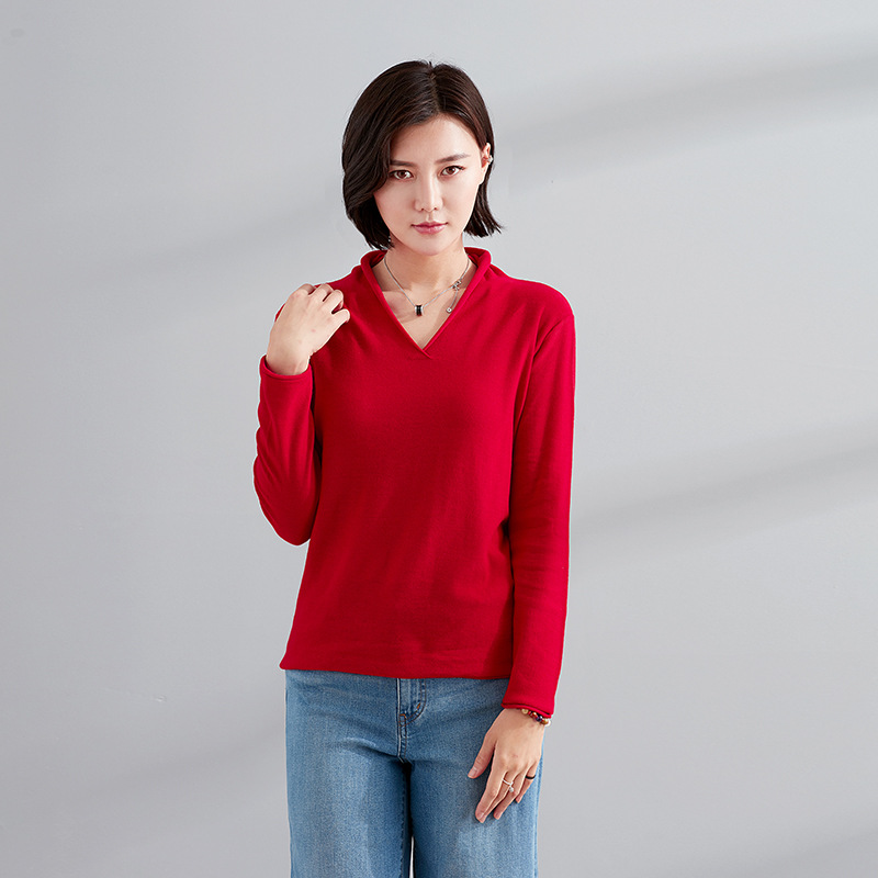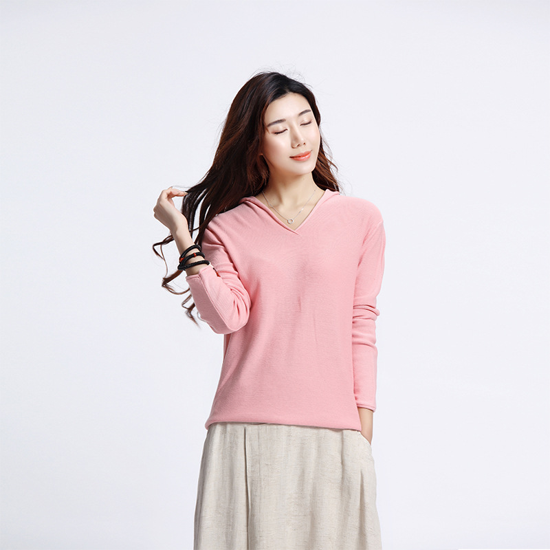 새로운 캐주얼 작은 모자 스웨터 한국 긴 소매 캐주얼 플러스 사이즈 면 풀오버 베이스 셔츠 여성 공장 도매