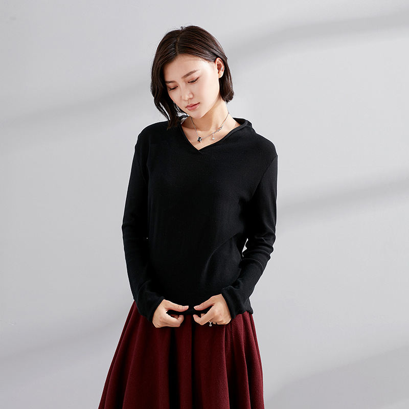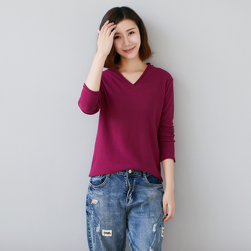 새로운 캐주얼 작은 모자 스웨터 한국 긴 소매 캐주얼 플러스 사이즈 면 풀오버 베이스 셔츠 여성 공장 도매스토어 가기