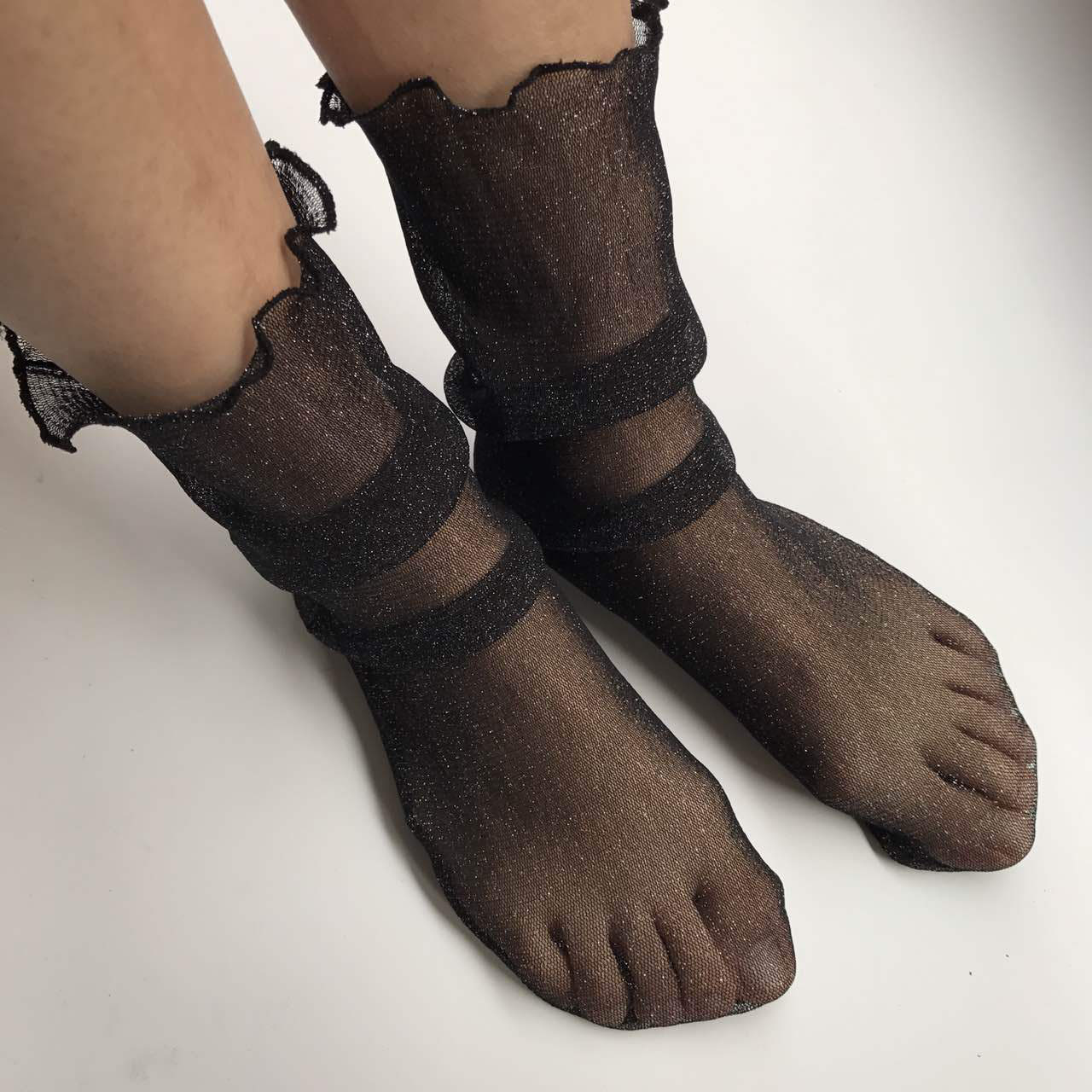 자체 제작 된 새로운 봄과 여름 얇은 튜브 투명 메쉬 양말 여성용 패션 메쉬 통기성 레이스 양말