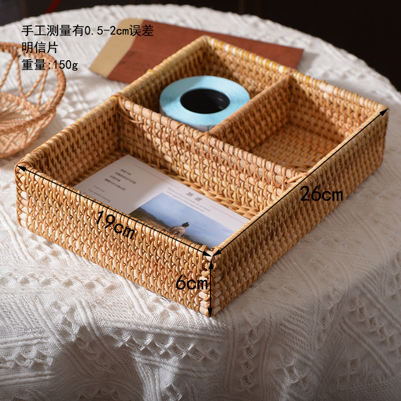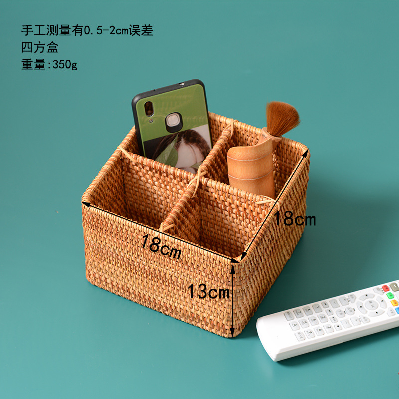 베트남 등나무 수제 보관함 커피 테이블 보관 바구니 원격 제어 휴대 전화 홈 단단한 나무 사각형 스토리지 랙