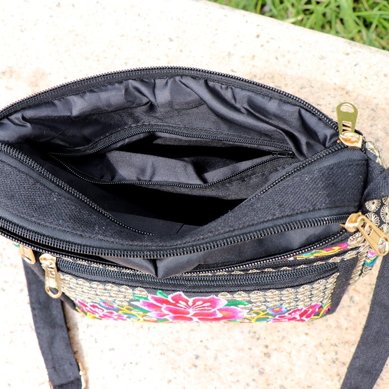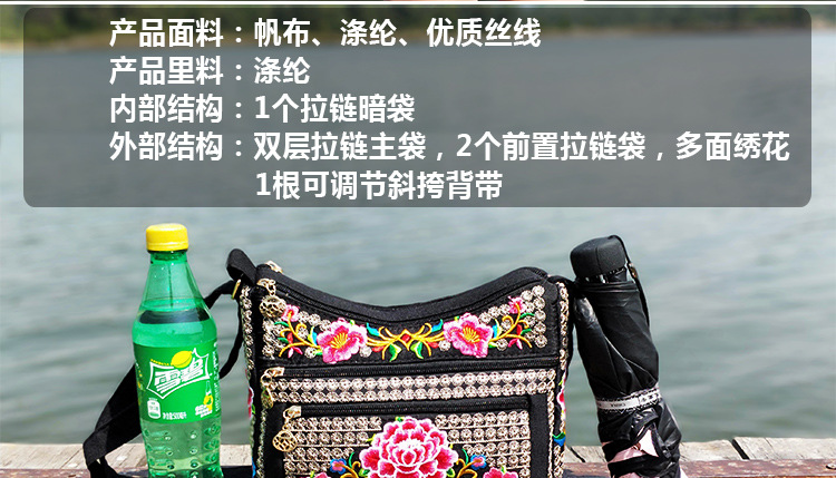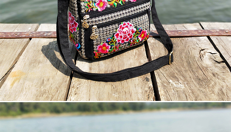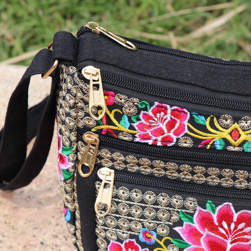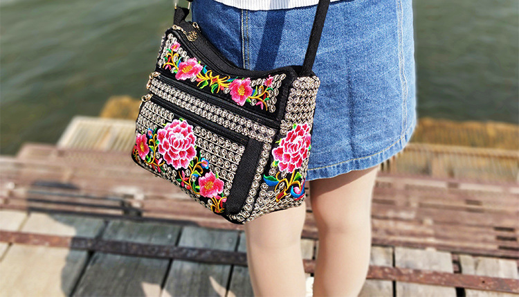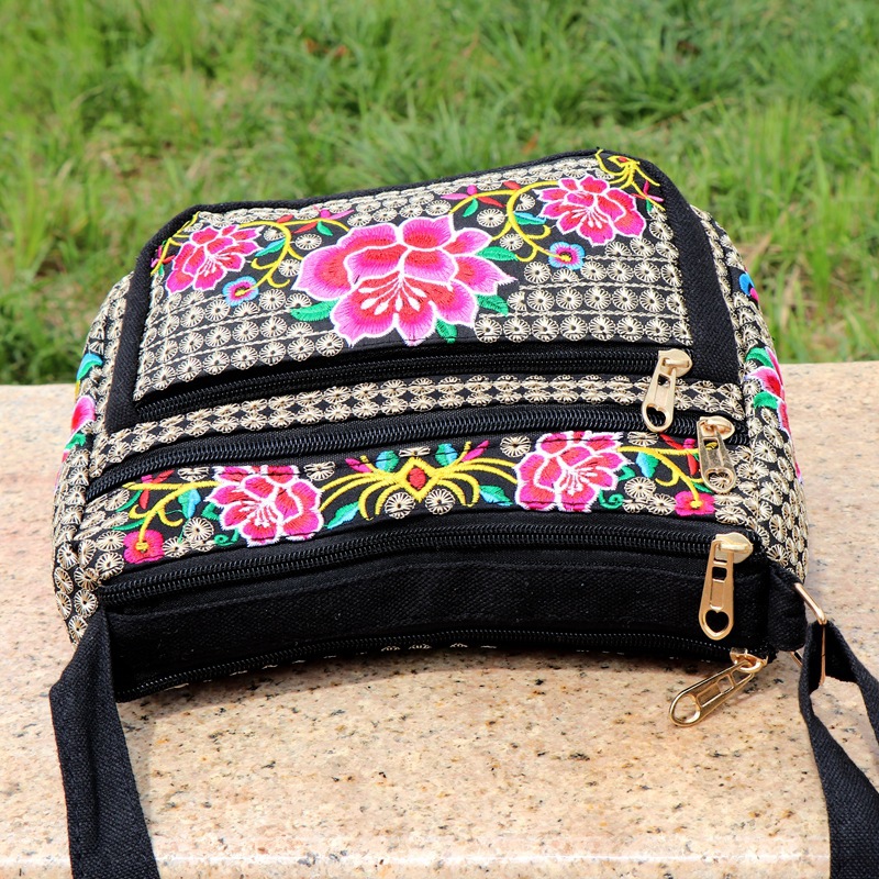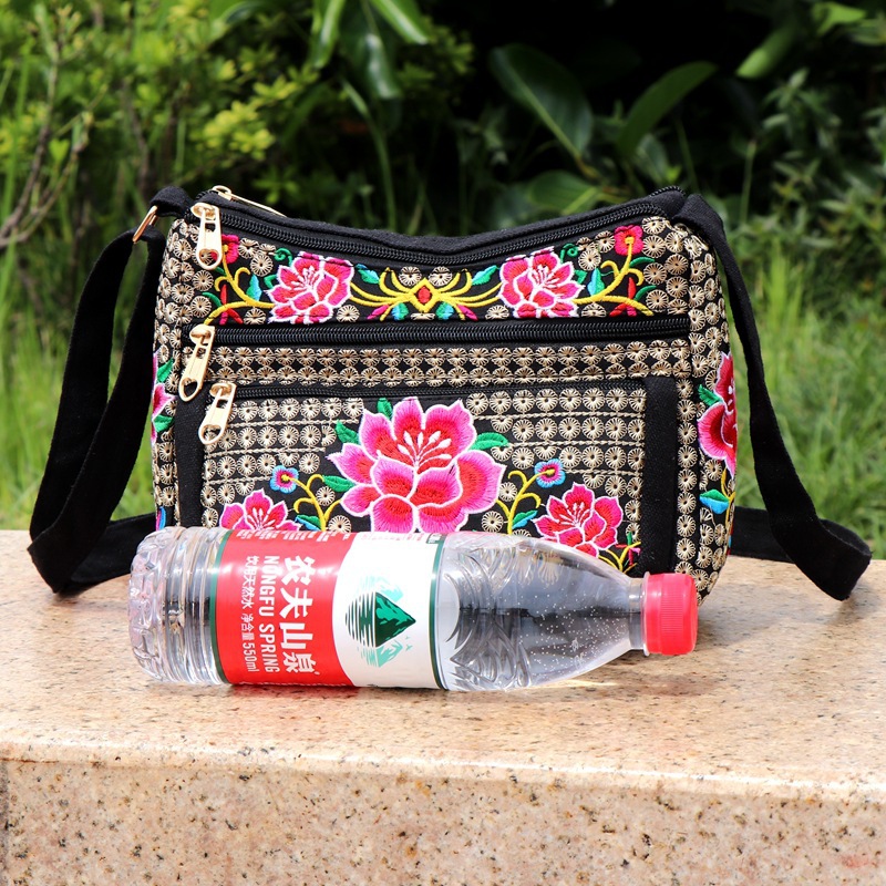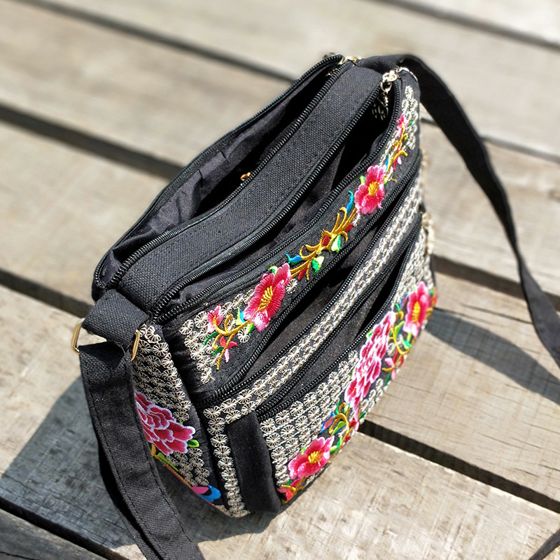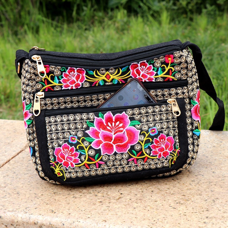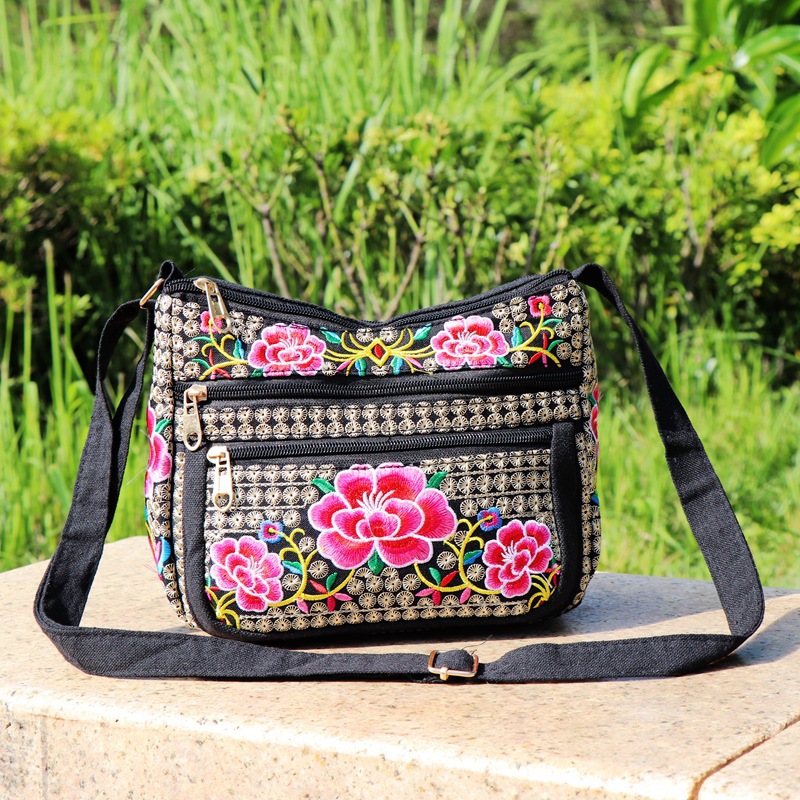 국경 간 공급 새로운 윈난 자수 가방 민족 스타일 가방 여성 자수 가방 어깨 크로스 백 4 층 캔버스 가방스토어 가기
