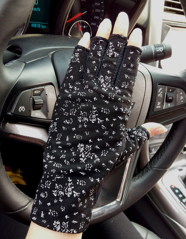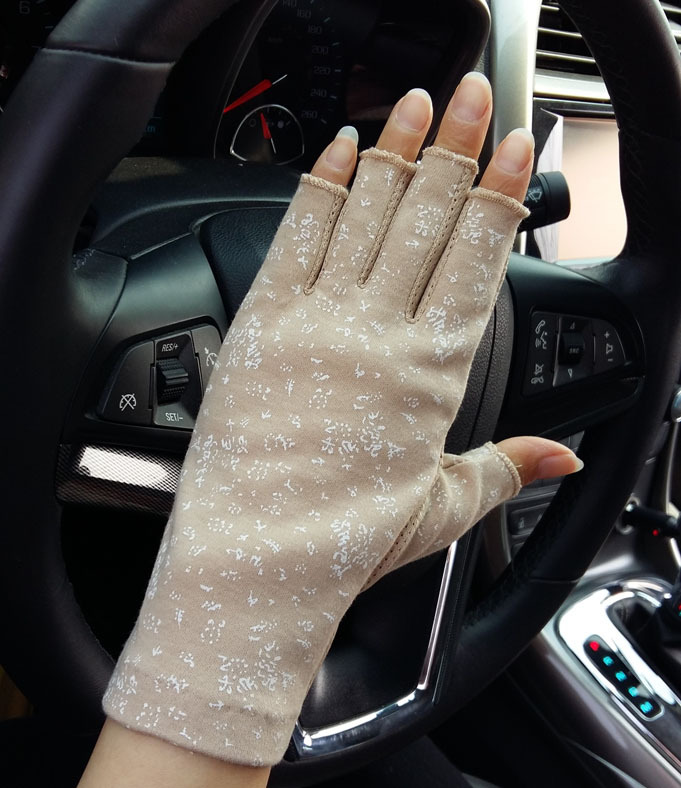 면 오픈 핑거 장갑 여성의 봄과 가을 얇은 여름 운전 선 스크린 하프 핑거 장갑 여성의 여름 짧은 장갑