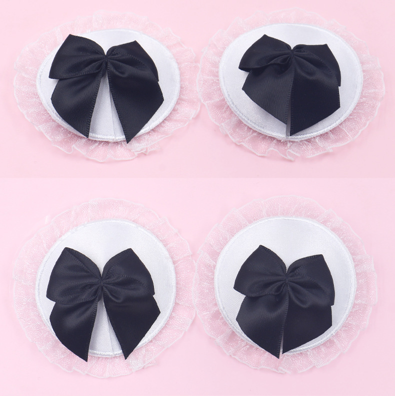 • 흰색 레이스 검은 활 라운드 흰색 배경