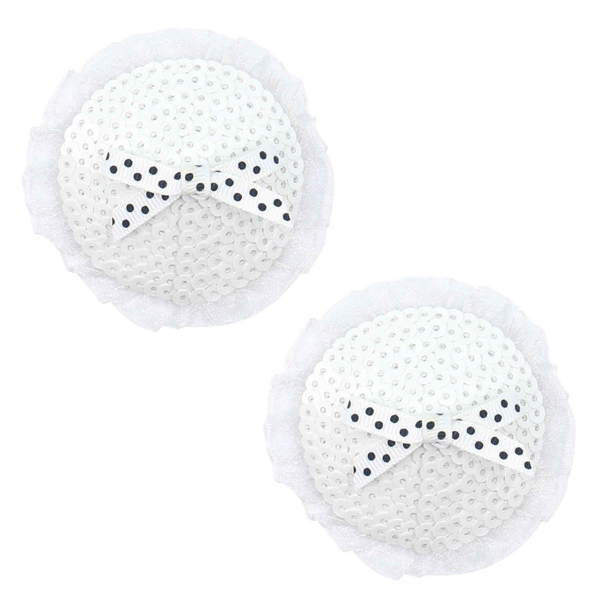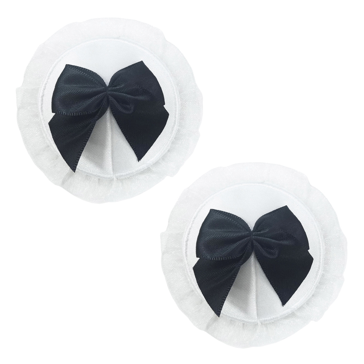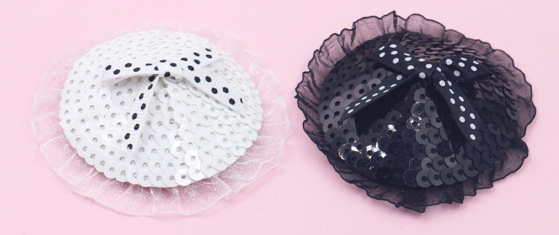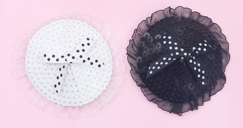 • 검은 색 점 활과 둥근 흰색 스팽글 흰색 레이스