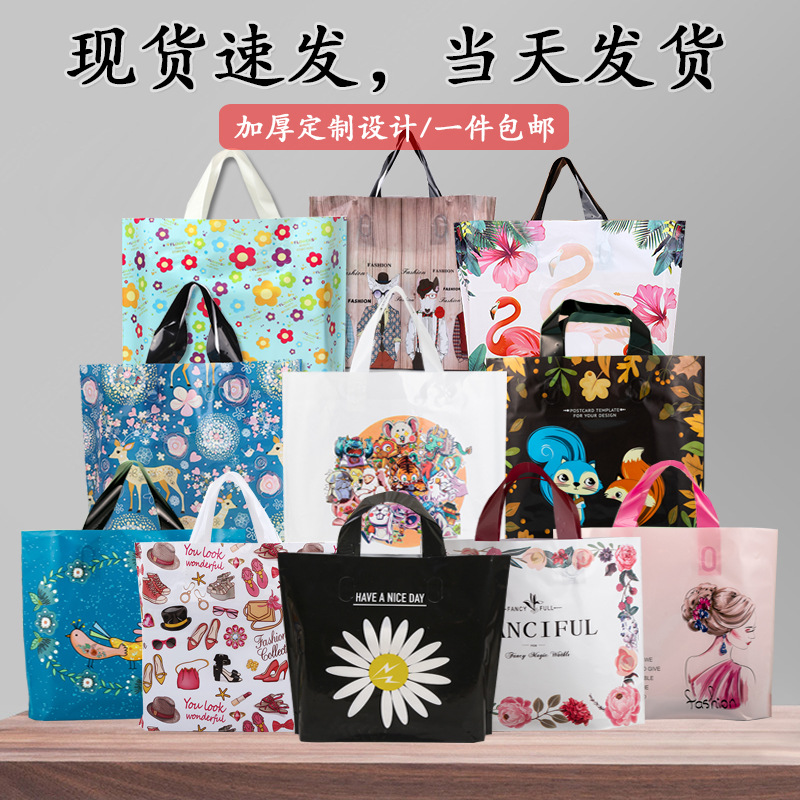 재고 남성과 여성 아동 의류 매장 가방 도매 옷 플라스틱 핸드백 두꺼운 선물 가방 쇼핑백