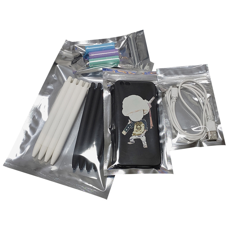 재고 알루미늄 음양 자체 밀봉 백 알루미늄 지퍼 밀봉 포켓 플랫 바닥 당기는 뼈 가방 이어폰 데이터 케이블 포장