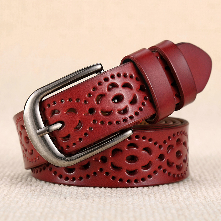 여성용 가죽 벨트 캐주얼 모든 매치 중공 벨트 여성용 고급 장식 간단한 패션 핀 버클 벨트 순수 소가죽스토어 가기