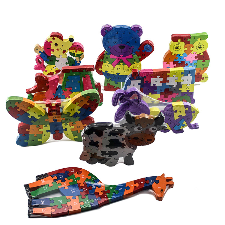 나무 만화 퍼즐 동물 모델 어린이 교육 장난감 직소 퍼즐 컬러 퍼즐 창조적 인 모델 장식품스토어 가기