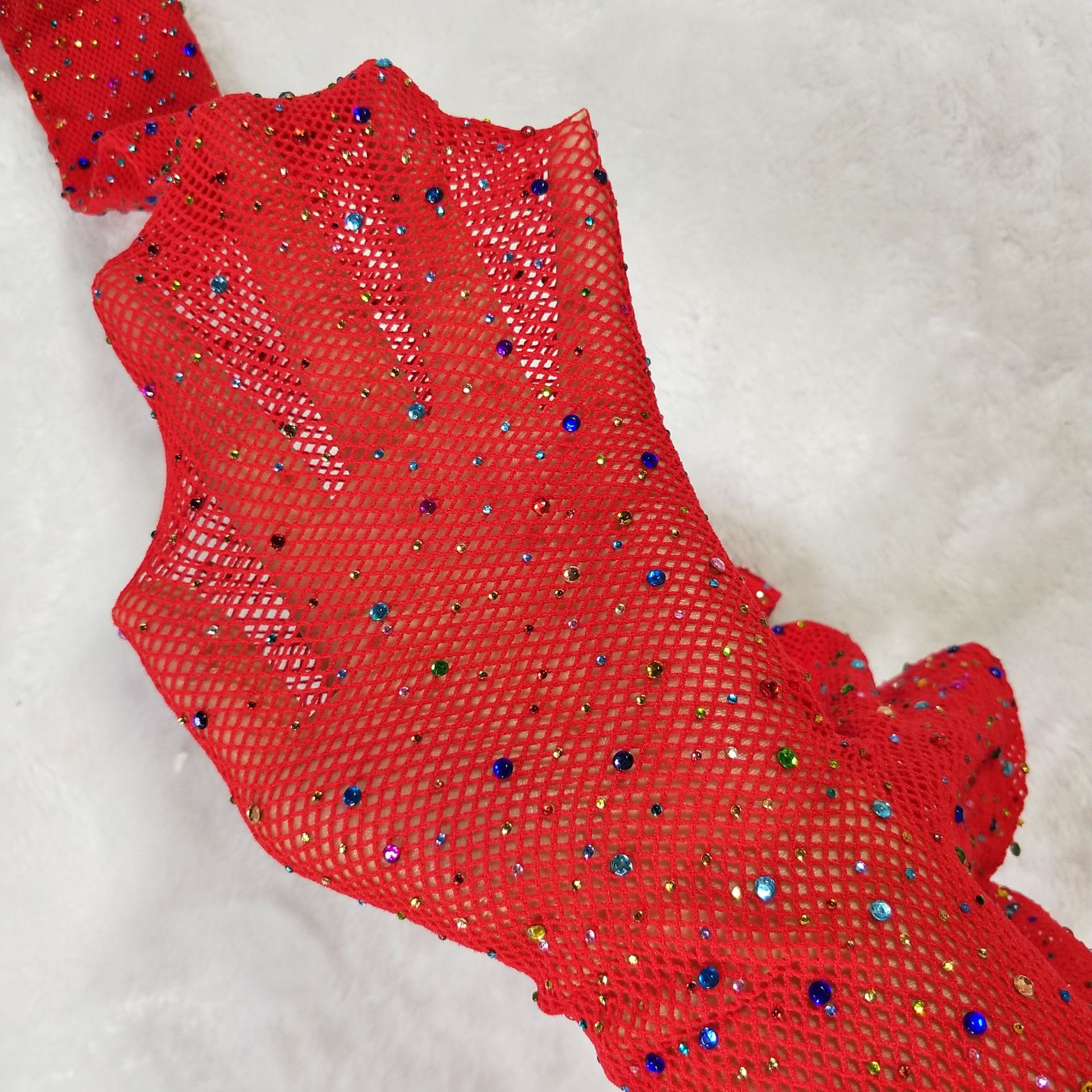 跨境新品欧美镂空烫钻网衣中大网情趣内衣开档网眼连身连体网袜