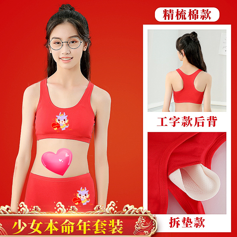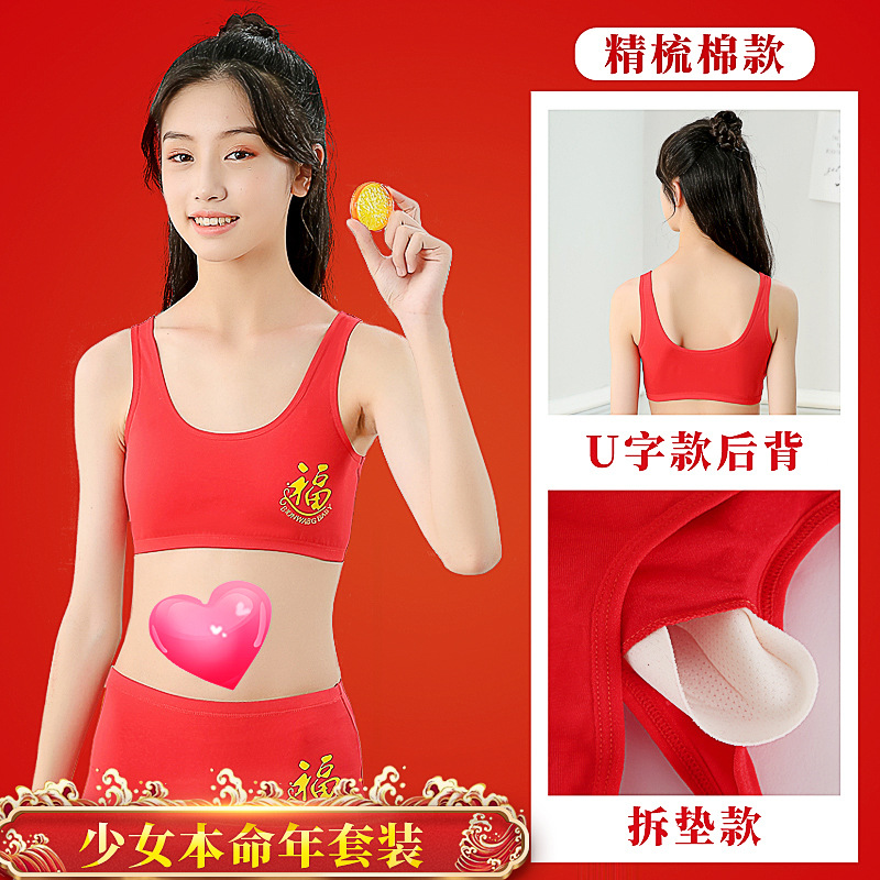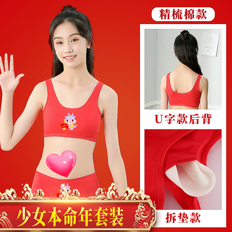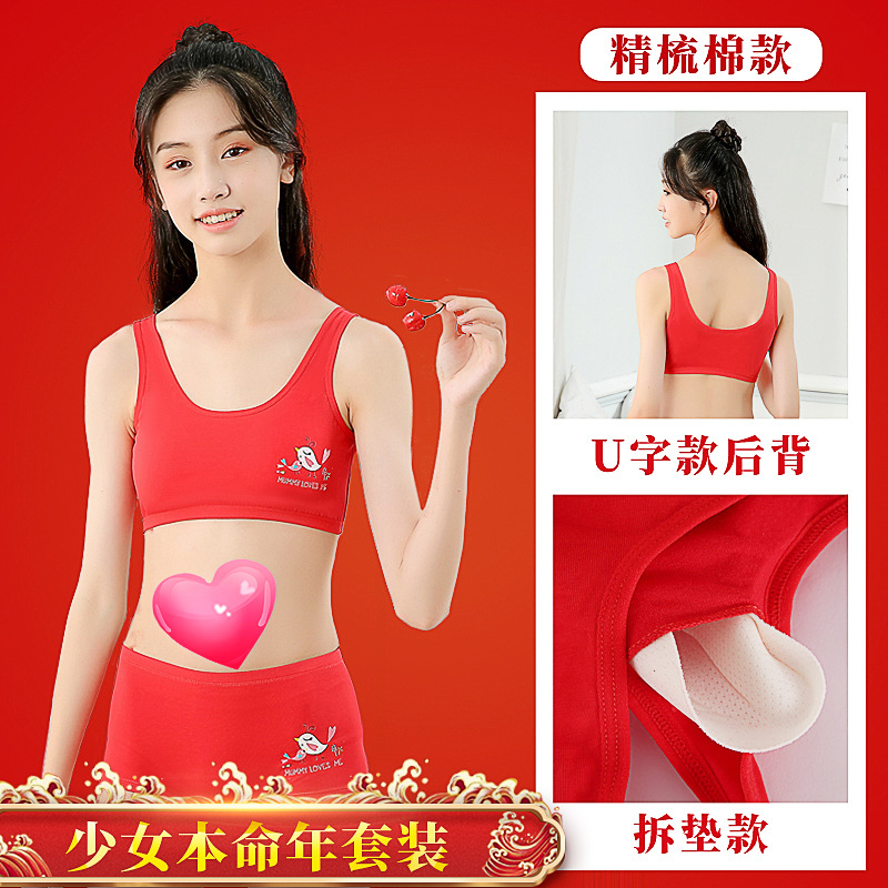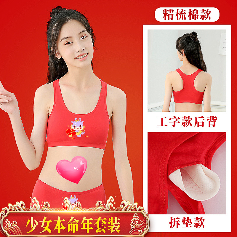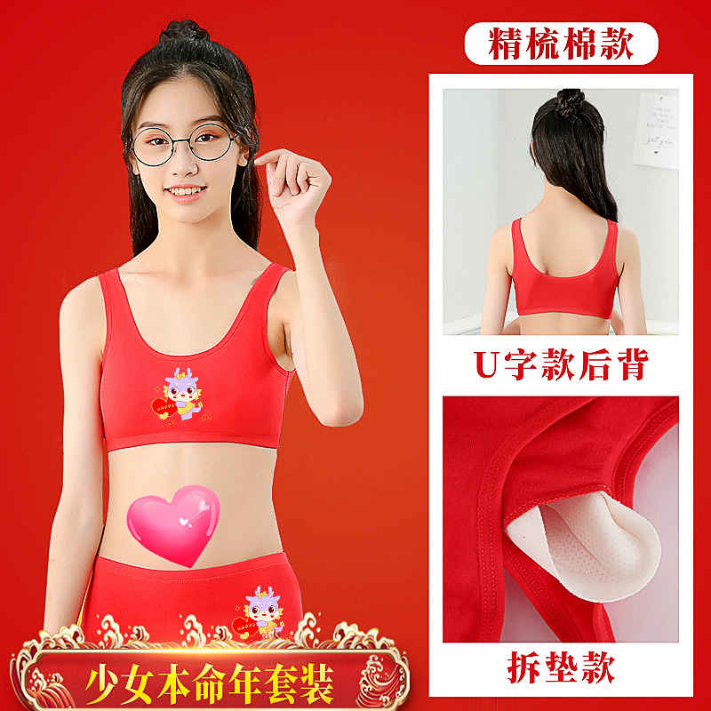 소녀의 생일 년 빨간 속옷 면 세트 12 세 용의 해 조끼 소녀의 학생 발달 면 브래지어