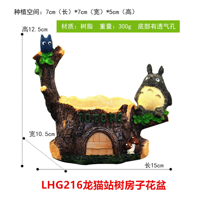 만화 크리에이티브 애니메이션 미야자키 하야오 토토로 그루터기 마이크로 풍경 다육 토토로 화분 수지 나무 집 화분