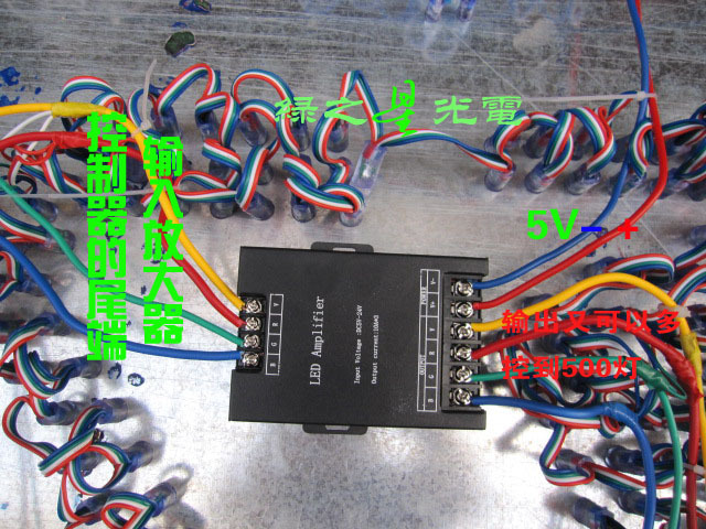 放大器的信号是从控制器的尾端输入的,当控制器控不了这么多灯,