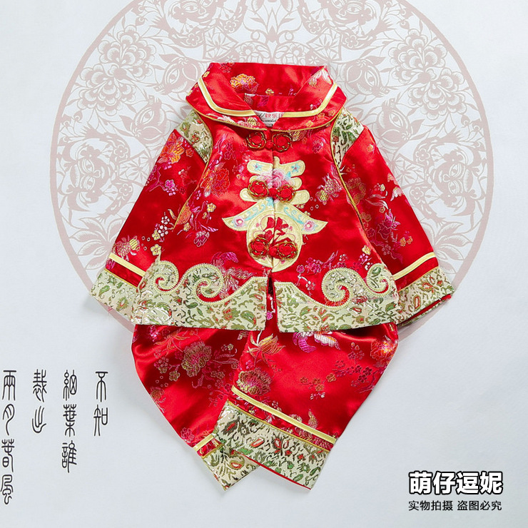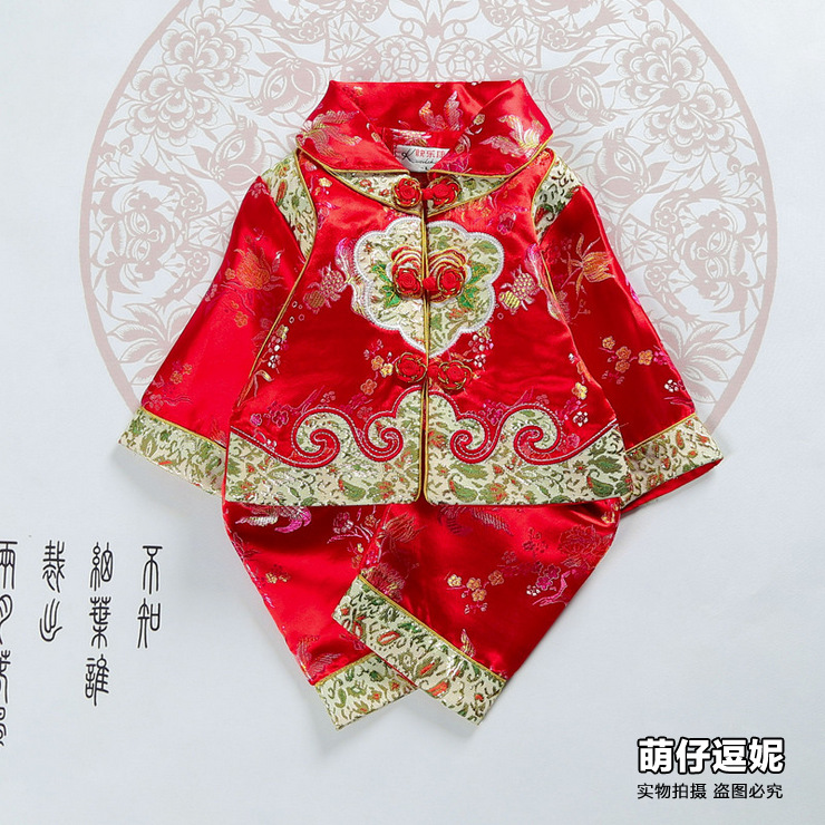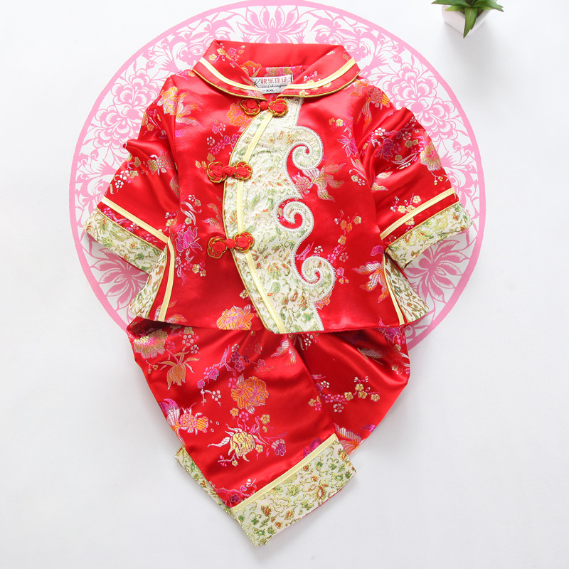 봄 어린이 착용 새로운 중국 스타일 어린이 당나라 세트 자수 당나라 세트 아기 세트 유아 의류스토어 가기