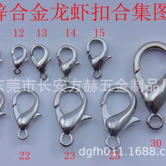 本厂是专业生产各类龙虾扣、韩国黄铜龙虾扣、合金龙虾扣、无铅龙虾扣、不锈钢龙虾扣、铜龙虾扣、SR弹弓扣、SSR水泡扣等等。电镀颜色可根据客户需求生产,龙虾扣规格10MM 12MM 13MM 14MM 15MM 16MM 18MM 21MM 23MM 25MM 35MM 等多种规格!