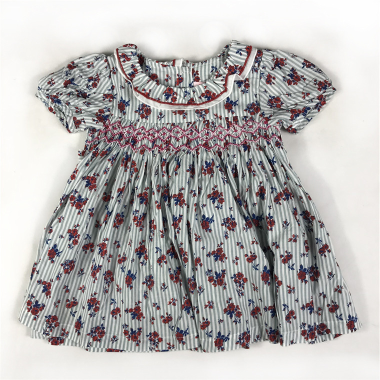 2024 여아 레트로 프린트 원피스, 수출 인기 아동복, 아동 신상 원피스, 공장 도매 아동복스토어 가기