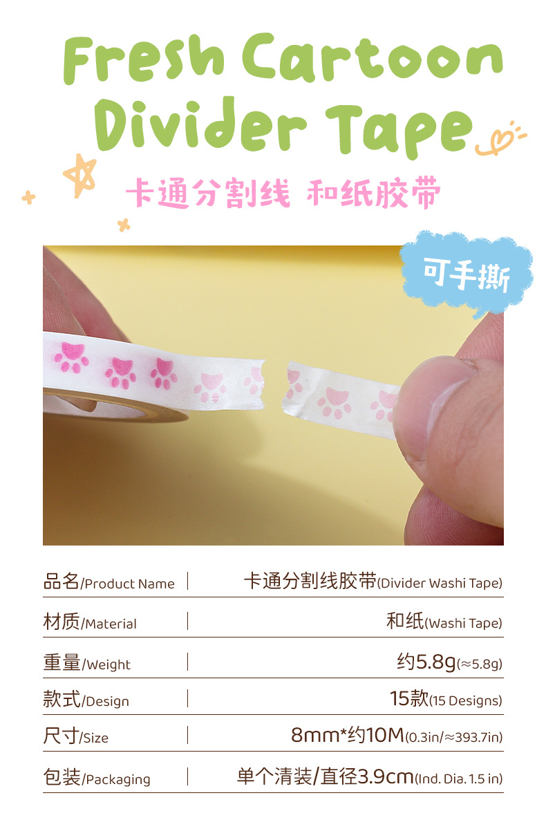 10 미터 스몰 사이즈 15 손으로 그린 종이 테이프 창조적 인 분할 선 스티커 손 계정 일기 장식 테이프 스티커스토어 가기