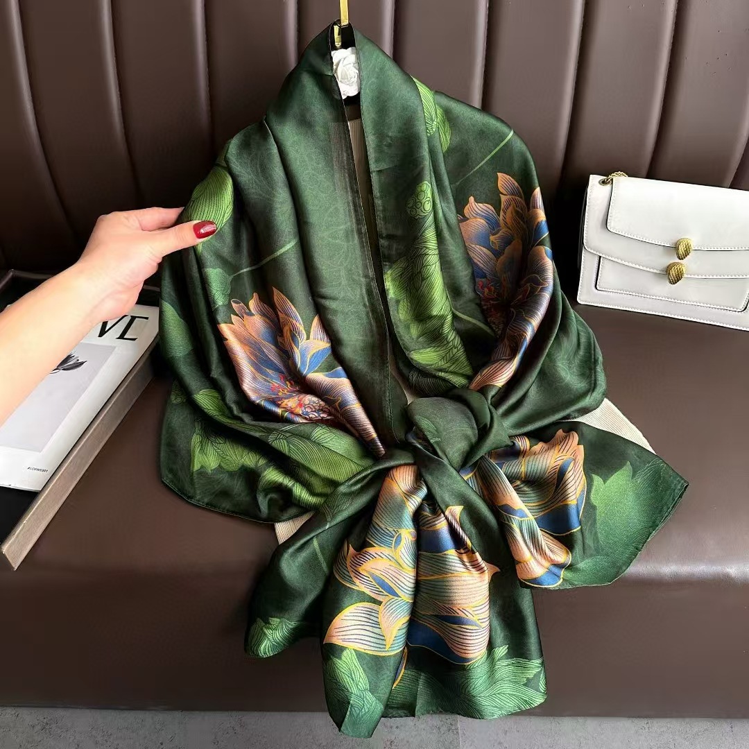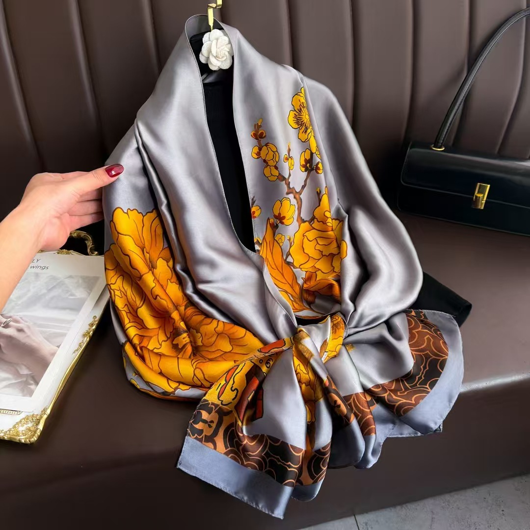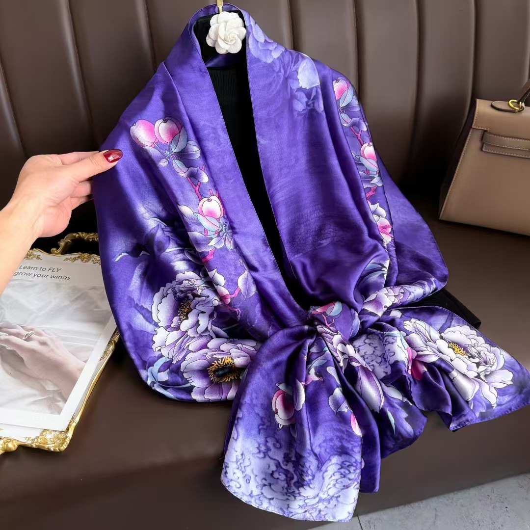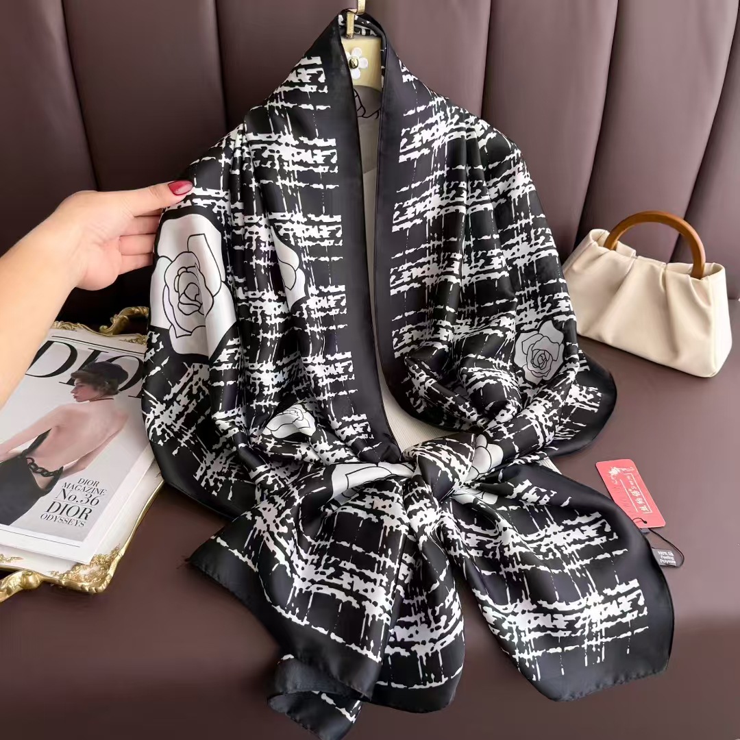 여성용 실크 스카프 2025 신작 봄 여름 숄과 스카프, 봄 가을 스타일, 패셔너블하고 다재다능한 스카프, 엄마를 위한 큰 거즈 스카프