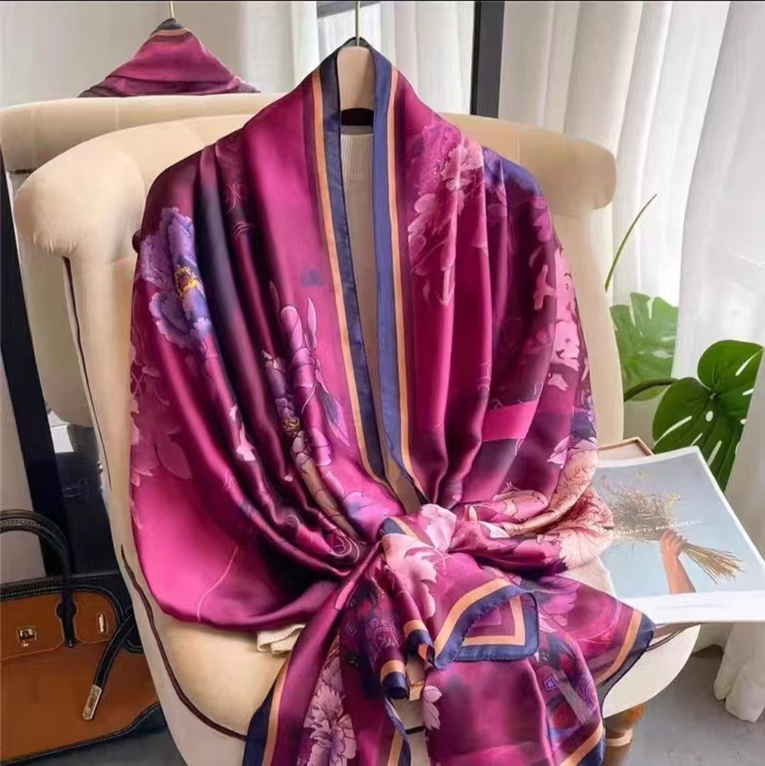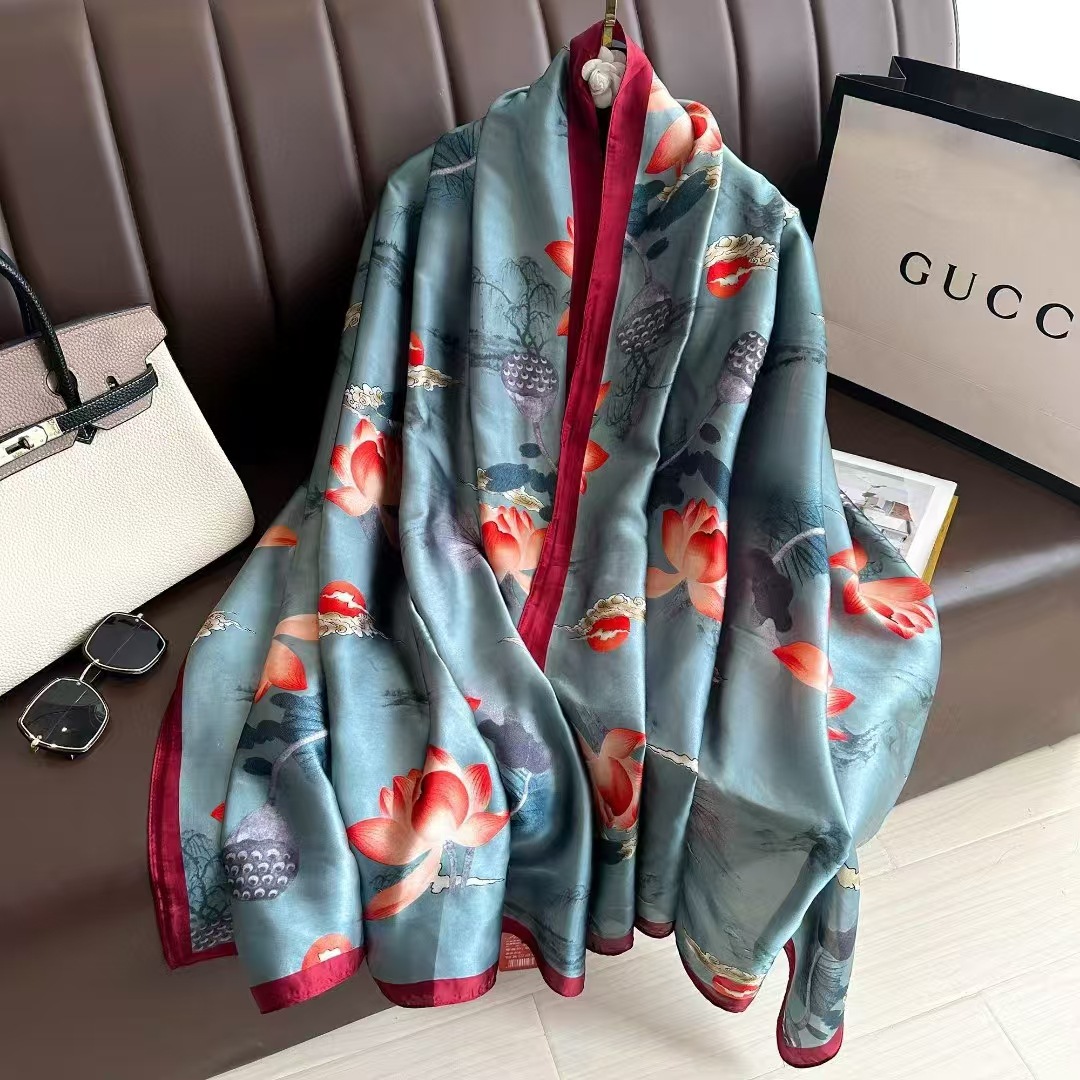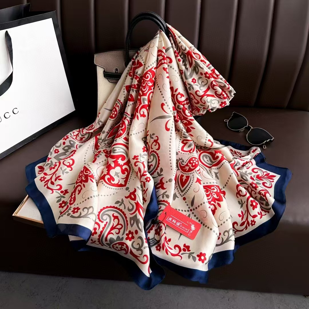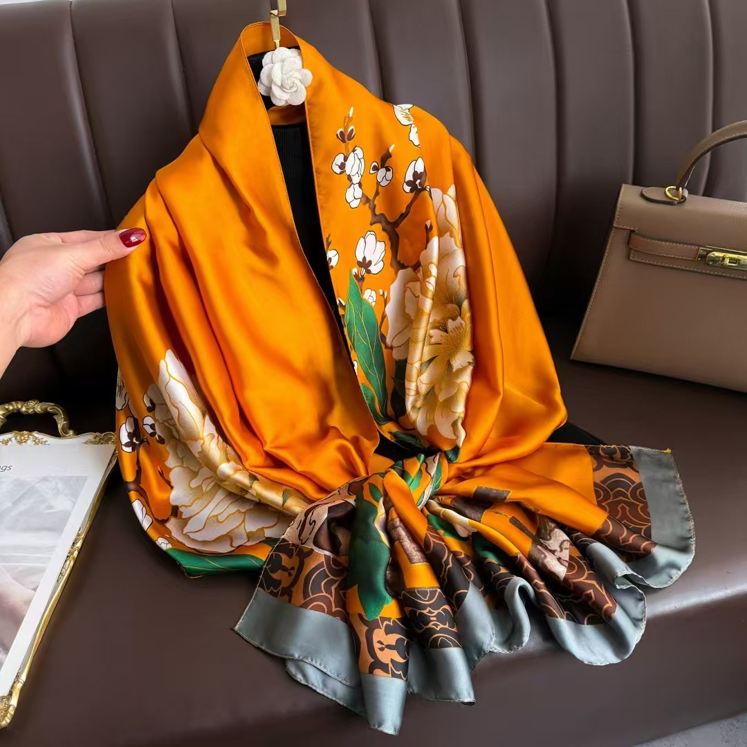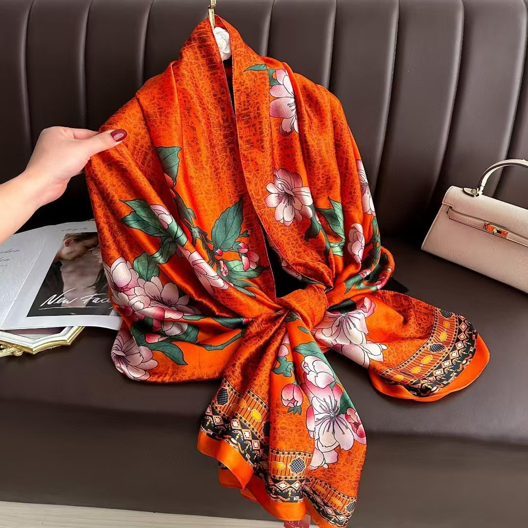 여성용 실크 스카프 2025 신작 봄 여름 숄과 스카프, 봄 가을 스타일, 패셔너블하고 다재다능한 스카프, 엄마를 위한 큰 거즈 스카프