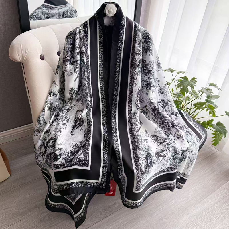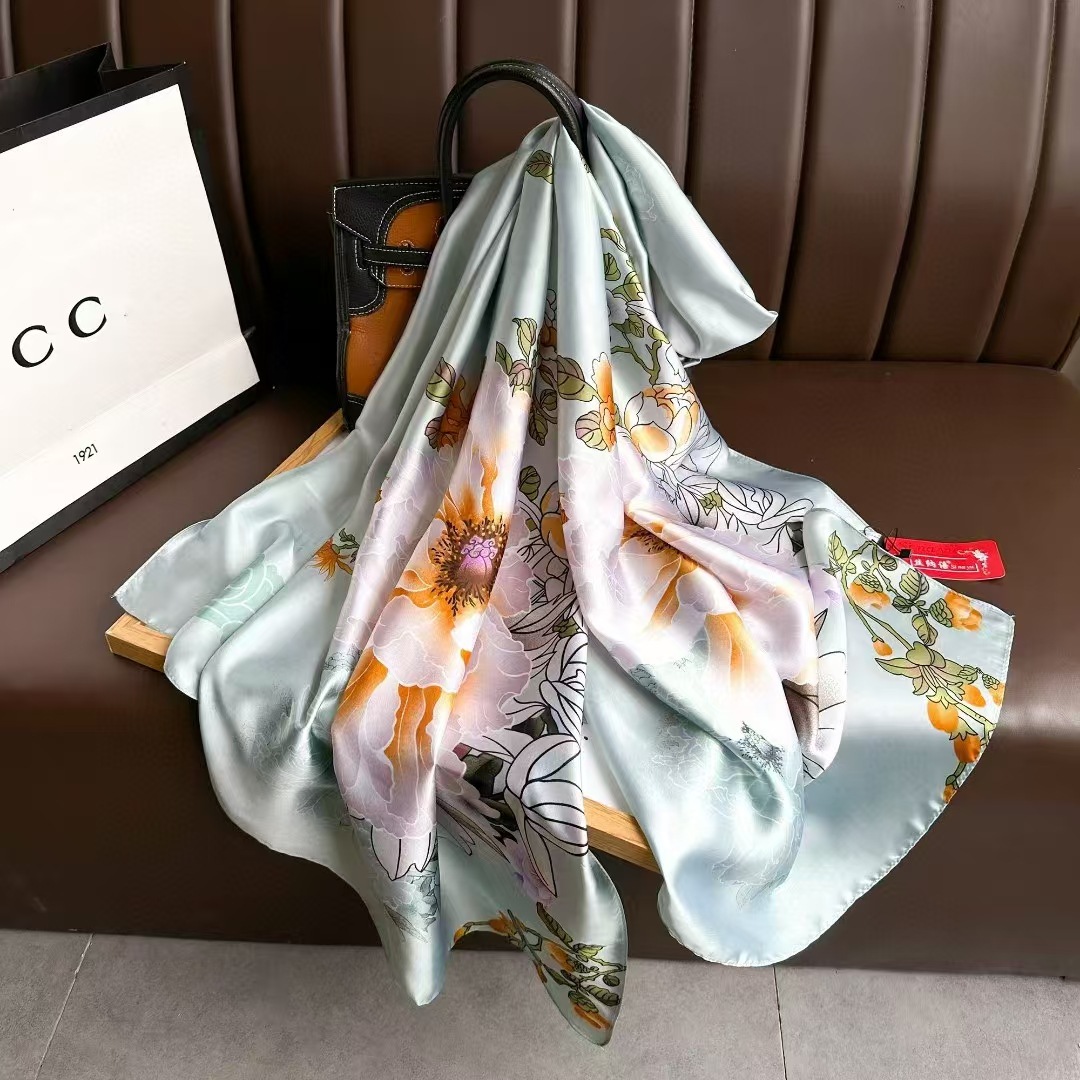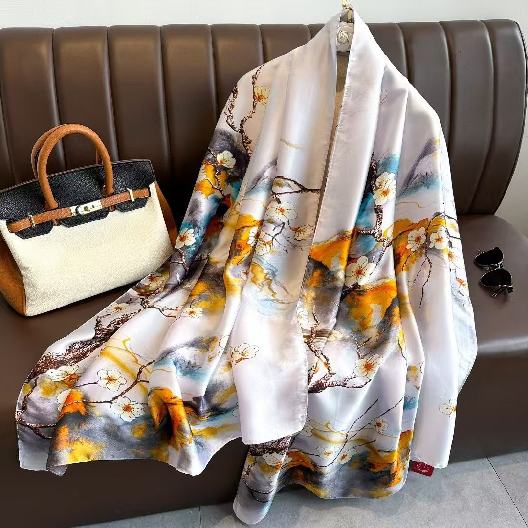 여성용 실크 스카프 2025 신작 봄 여름 숄과 스카프, 봄 가을 스타일, 패셔너블하고 다재다능한 스카프, 엄마를 위한 큰 거즈 스카프스토어 가기
