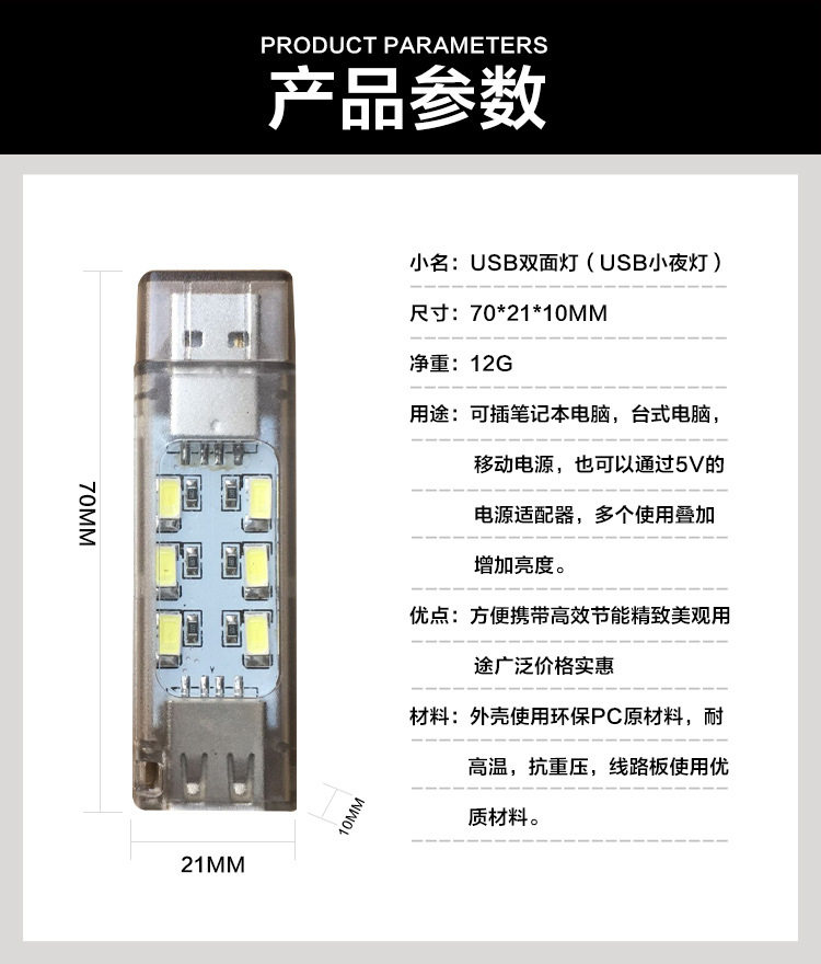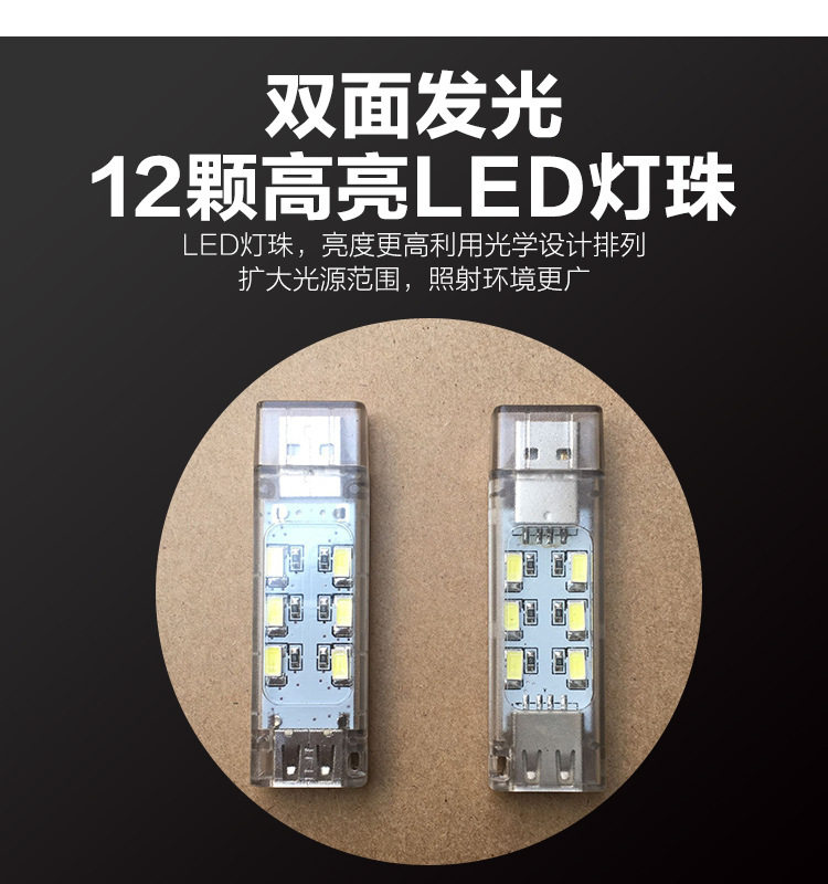 양면 USB 야간 조명 휴대용 야간 조명 학생 기숙사 빛은 데이터 중첩 전송 가능