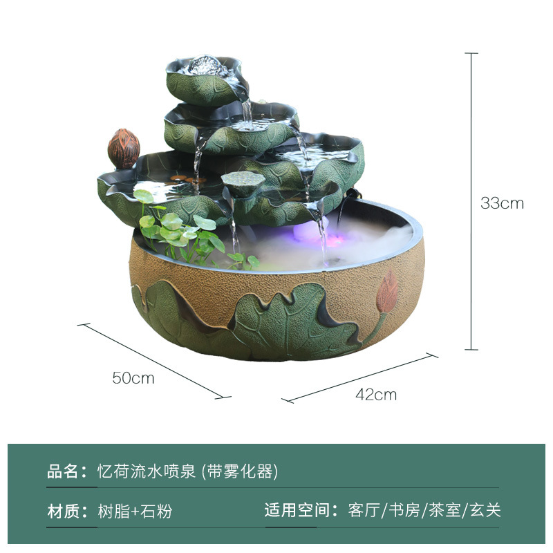 搭配七色雾化器,烟雾袅绕,静静伴随着流水而流淌,源自荷的风韵、加湿空气的效果更好。