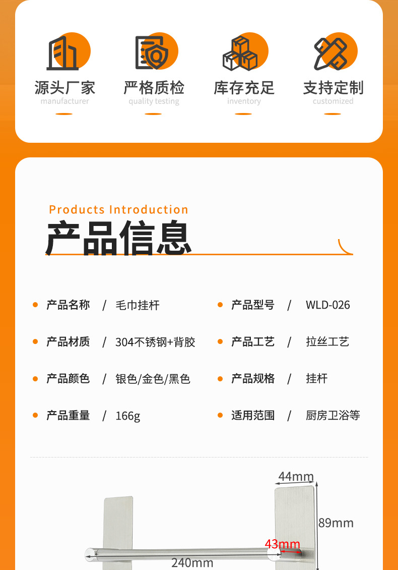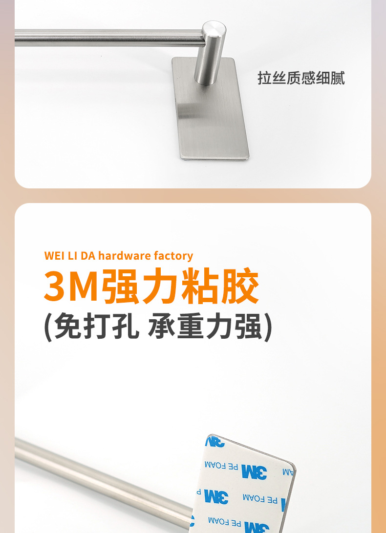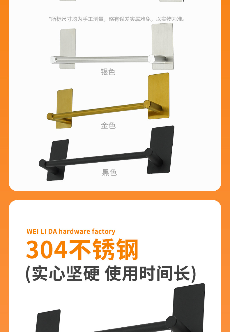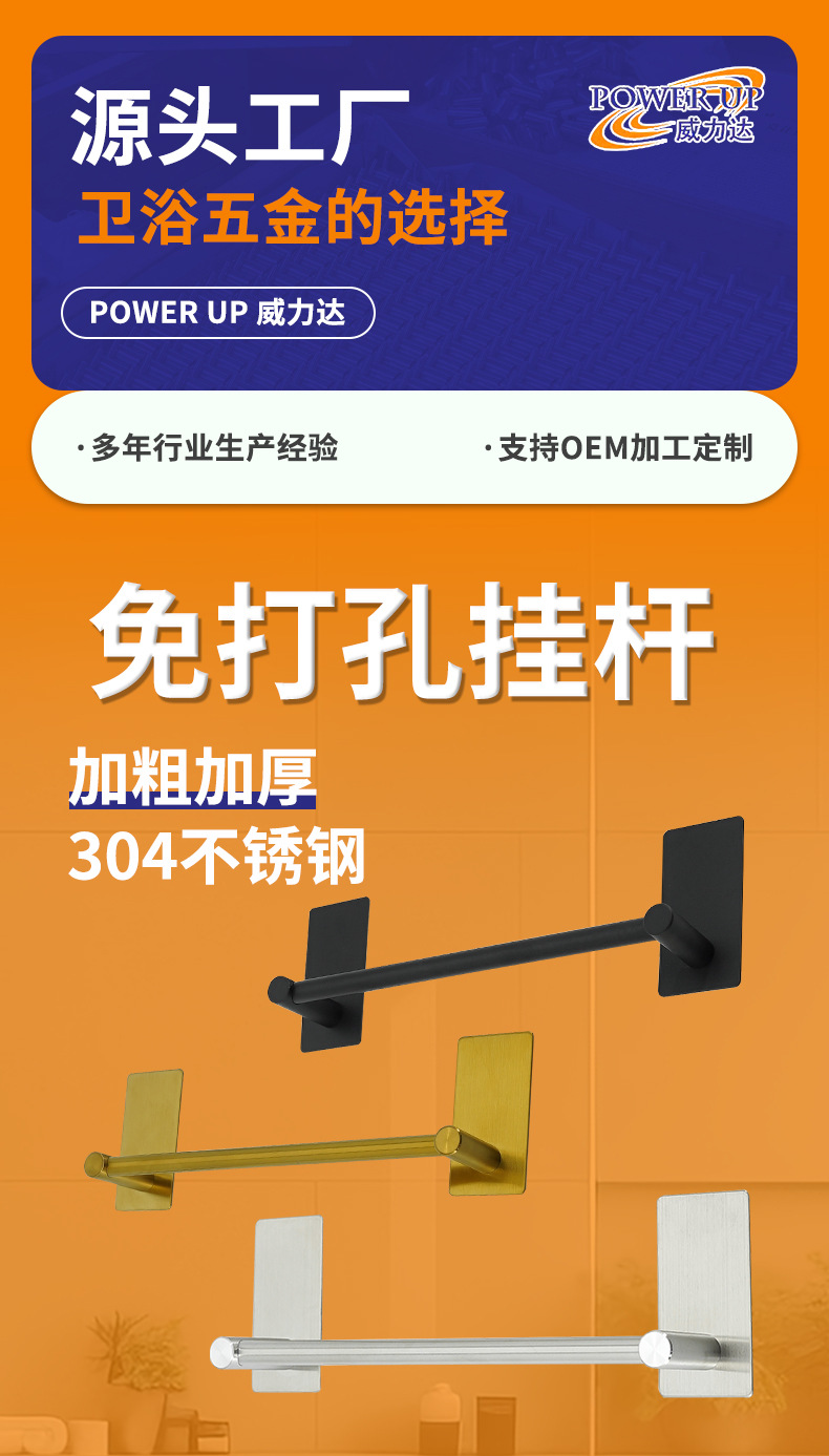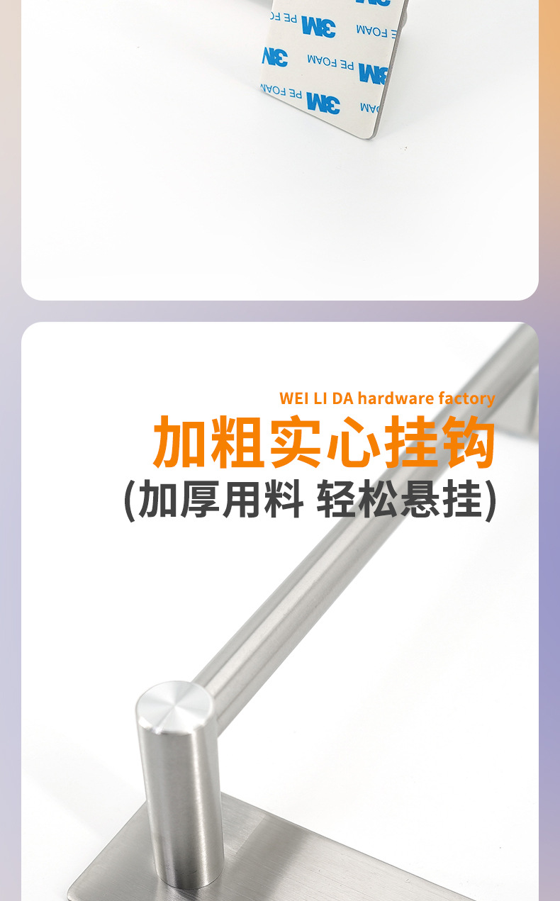 威力达五金制品厂主要生产:粘钩、衣钩、挂钩、衣帽钩、不锈钢排钩、厨房置物架、浴室毛巾架等五金产品,款式多样,支持多规格定制,OEM定制加工等