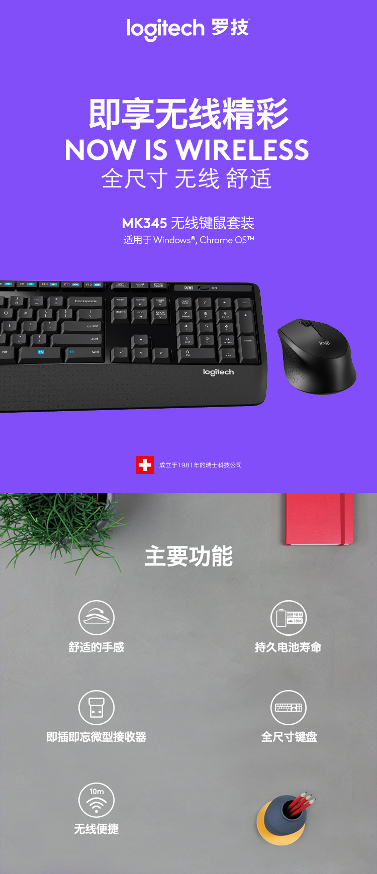 도매 Logitech MK345 무선 키보드 및 마우스 세트 컴퓨터 게임 무선 마우스 키보드 세트 컴퓨터 액세서리스토어 가기