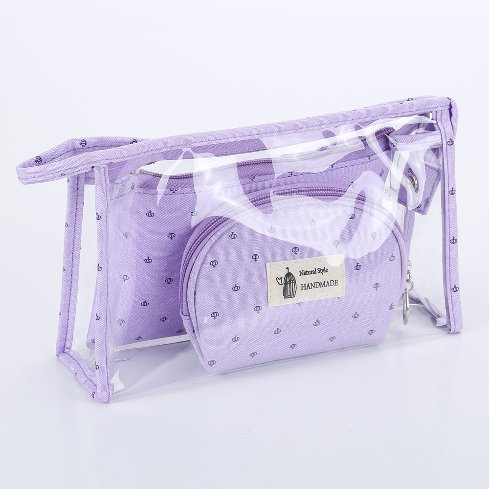클래식 해외 인기상품 한국판 면 3종 세트 여행용 세면도구/화장품 가방 투명 화장품 가방