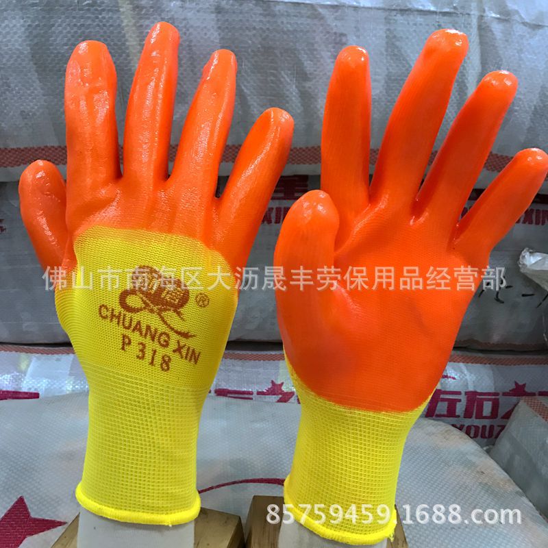 • 【产品名称】:创信十三针PVC红半挂手套p318