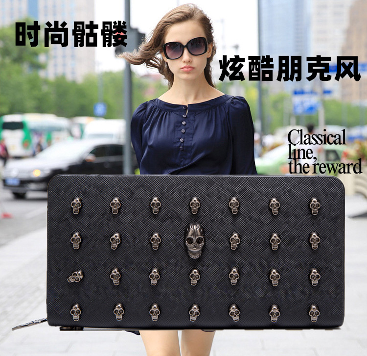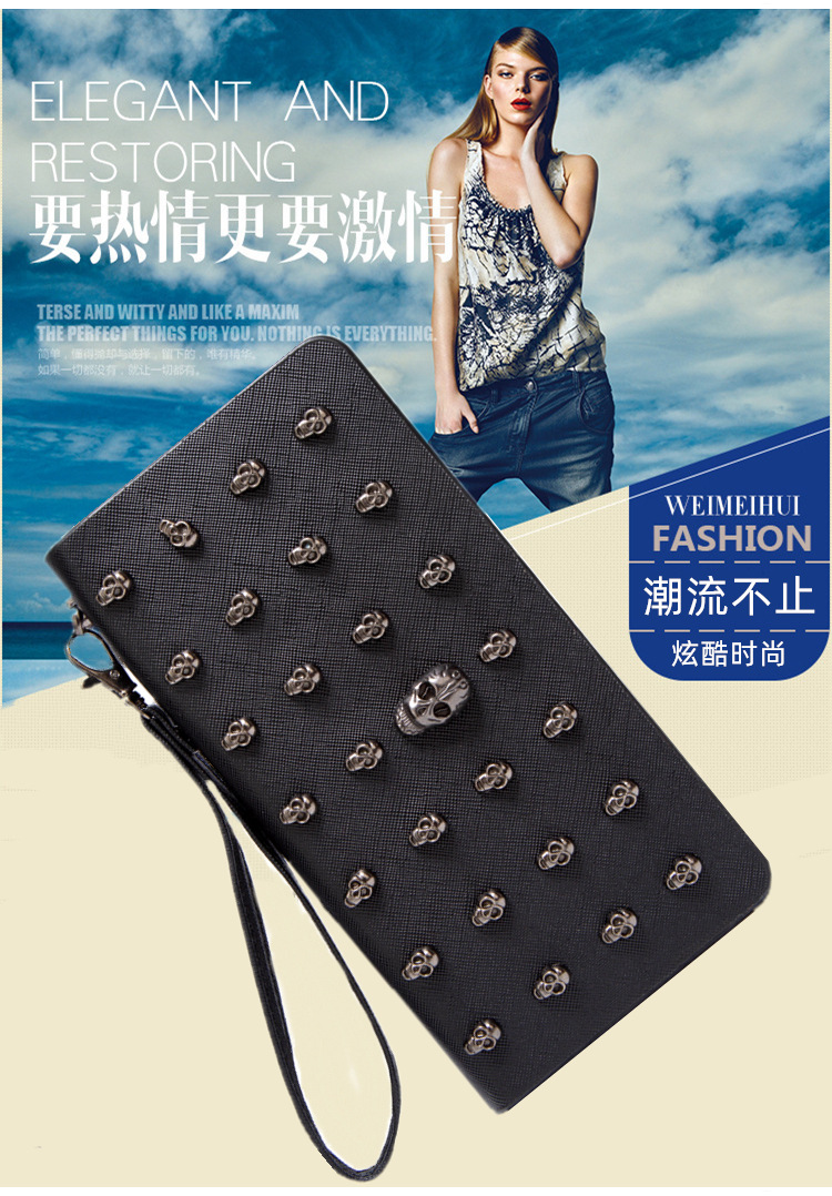 대외 무역 새로운 동전 지갑 여성 동전 가방 긴 지퍼 핸드백 새로운 해골 전화 가방 카드 가방 H002스토어 가기