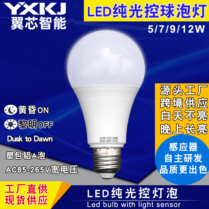 Dusk till dawn sensor LED light bulb ,A60 security light bulbs,built in sensor which comes on in the dark & automatically turns,off when its daylight. Ideal sensor bulb for entrance door, garden security lighting.光感应球泡灯 光控灯泡 LED光感應灯泡 led纯光控灯泡 天黑自动亮 白天不亮晚上长亮 夜灯庭院路灯 自动感应灯泡 光感灯泡 A60灯泡 led纯光控感应灯泡 A60塑包铝感应光感球泡灯厂家直销可代工生产 跨境电商热销 纯光控感应球泡灯 塑包铝光控灯泡黄昏到黎明球泡灯 纯光控LED灯泡智能感应灯泡光控夜灯白天不亮晚上长亮 寬壓110V light sensor bulb