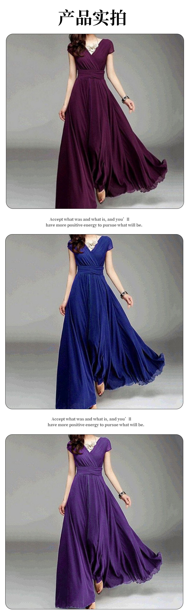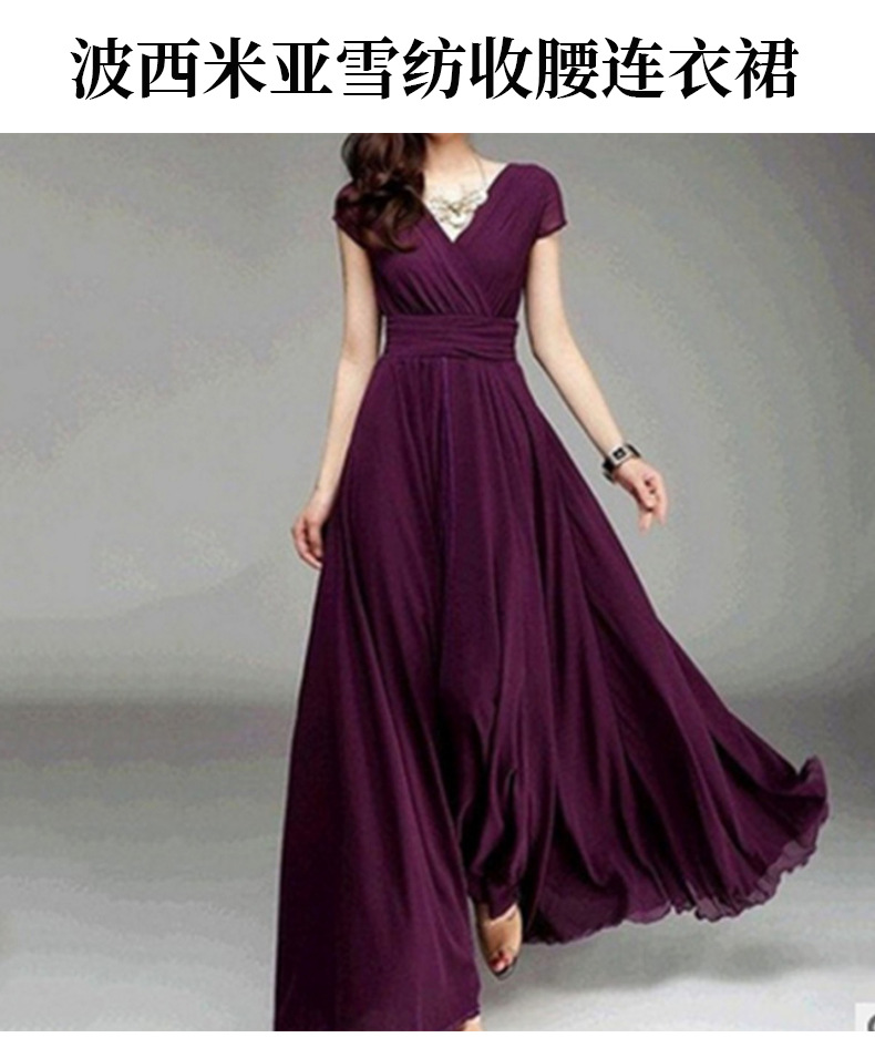 알리익스프레스 아마존 유럽 및 미국 스타일 브이넥 반팔 보헤미안 쉬폰 허리 슬림핏 배 가리기 원피스 드레스