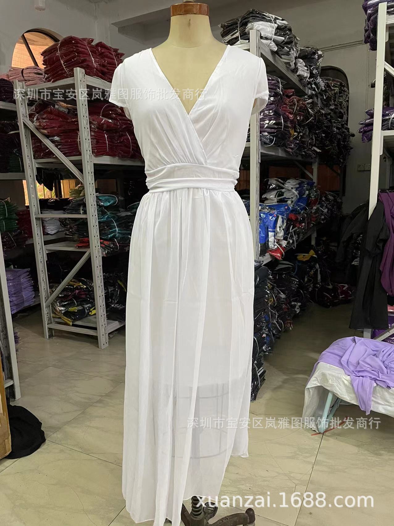 알리익스프레스 아마존 유럽 및 미국 스타일 브이넥 반팔 보헤미안 쉬폰 허리 슬림핏 배 가리기 원피스 드레스스토어 가기