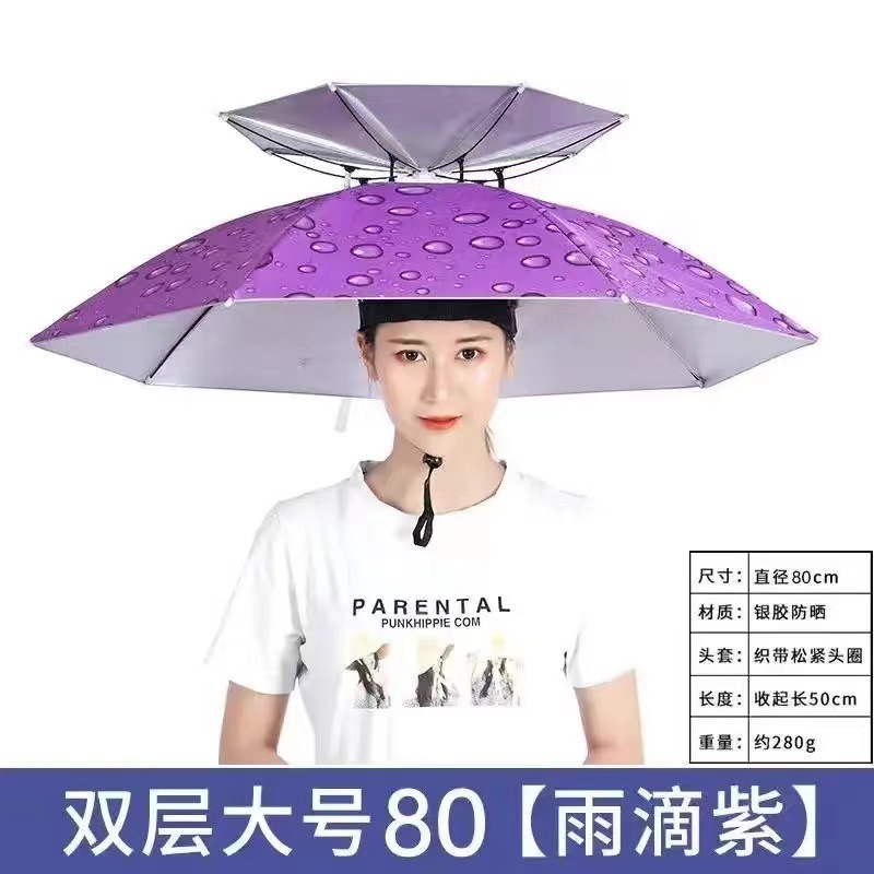 • 직경 80cm 더블 레이어 우산 모자 [보라색 방울]