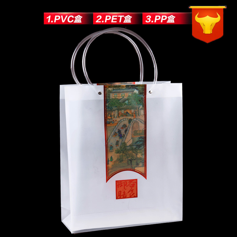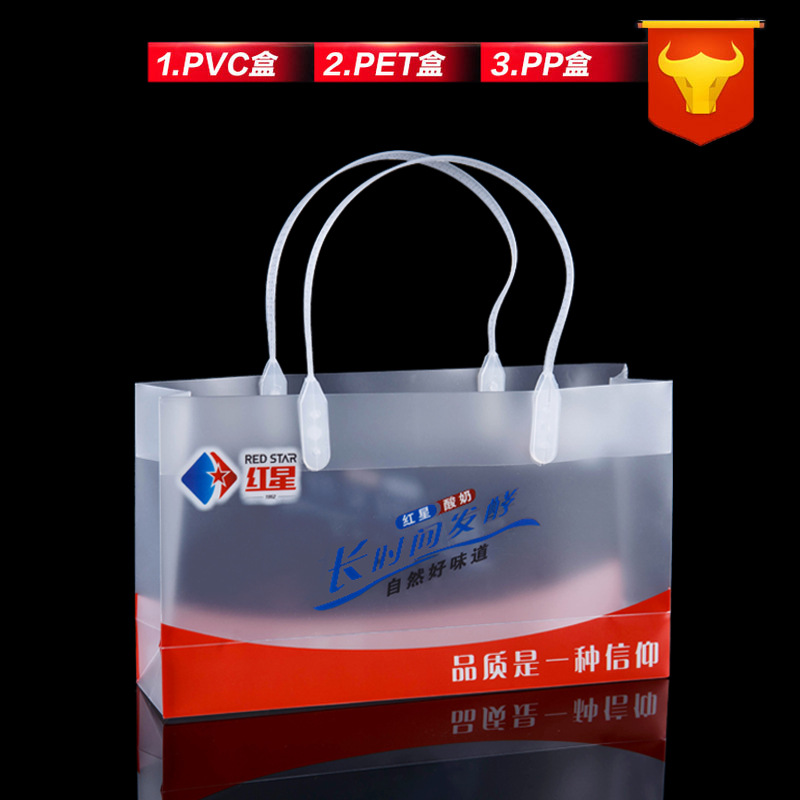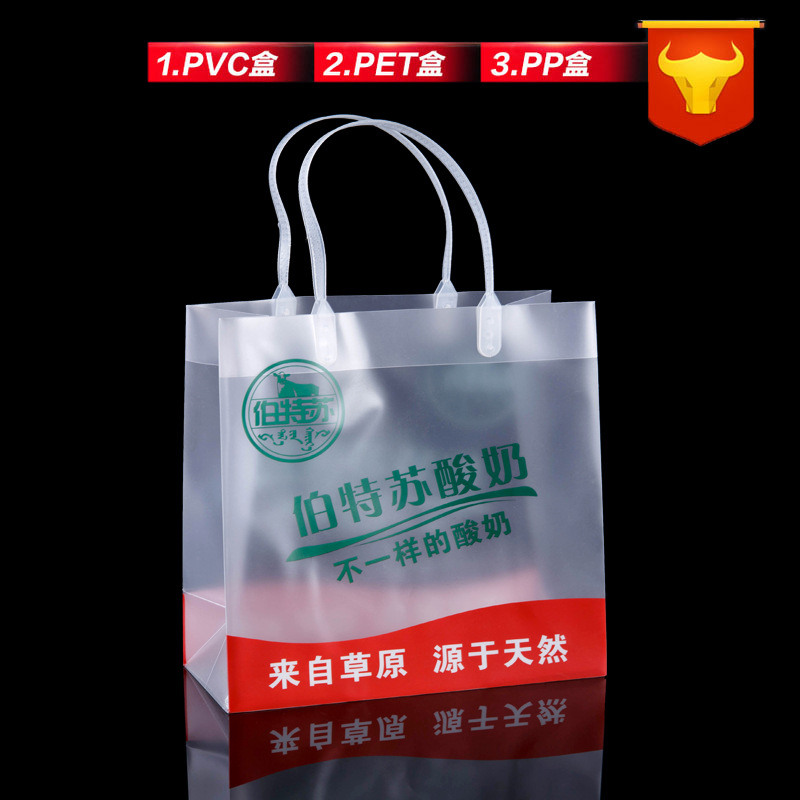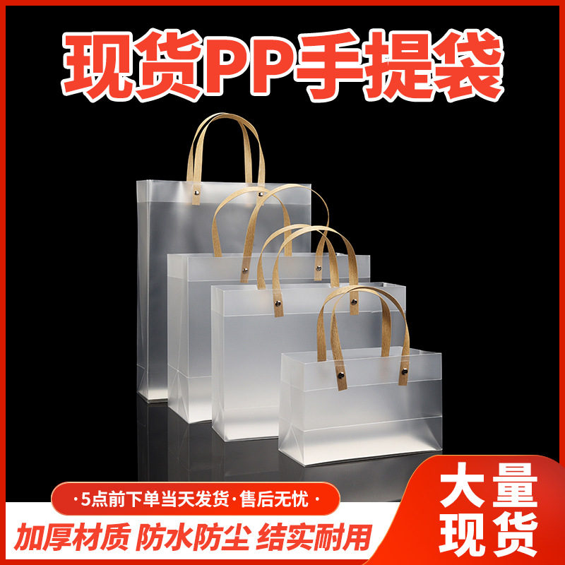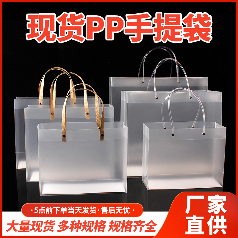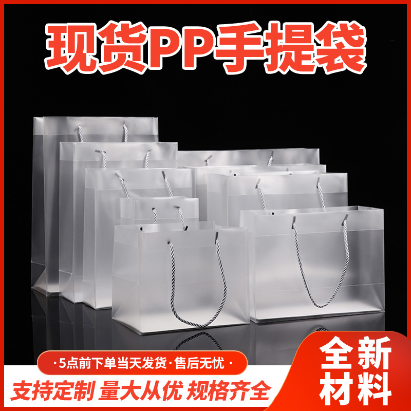 프로스트 토트 백 맞춤형 투명 선물 가방 의류 매장 가방 작은 선물 pp 토트 백 플라스틱 높은 감각