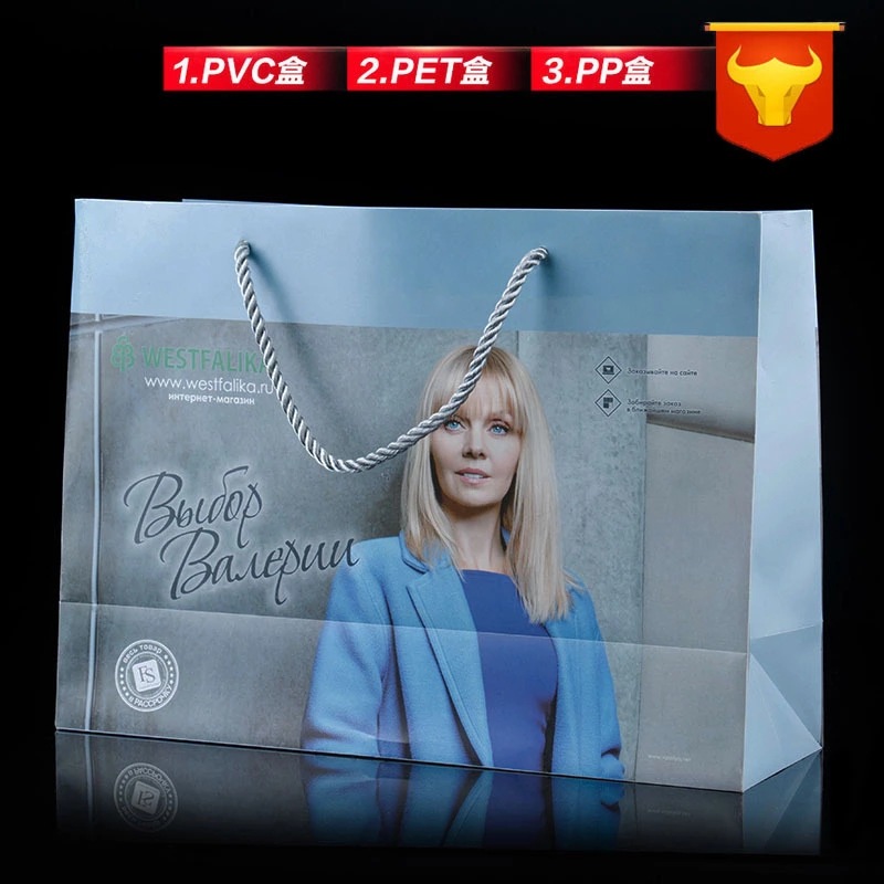 프로스트 토트 백 맞춤형 투명 선물 가방 의류 매장 가방 작은 선물 pp 토트 백 플라스틱 높은 감각스토어 가기