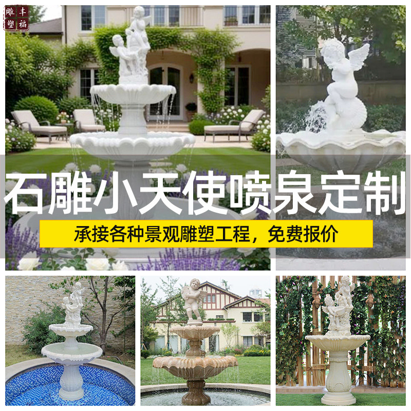 유럽풍 인물상 화이트 대리석 작은 천사 분수, 실내 대리석 폭포 분수 조각상, 소원 분수스토어 가기