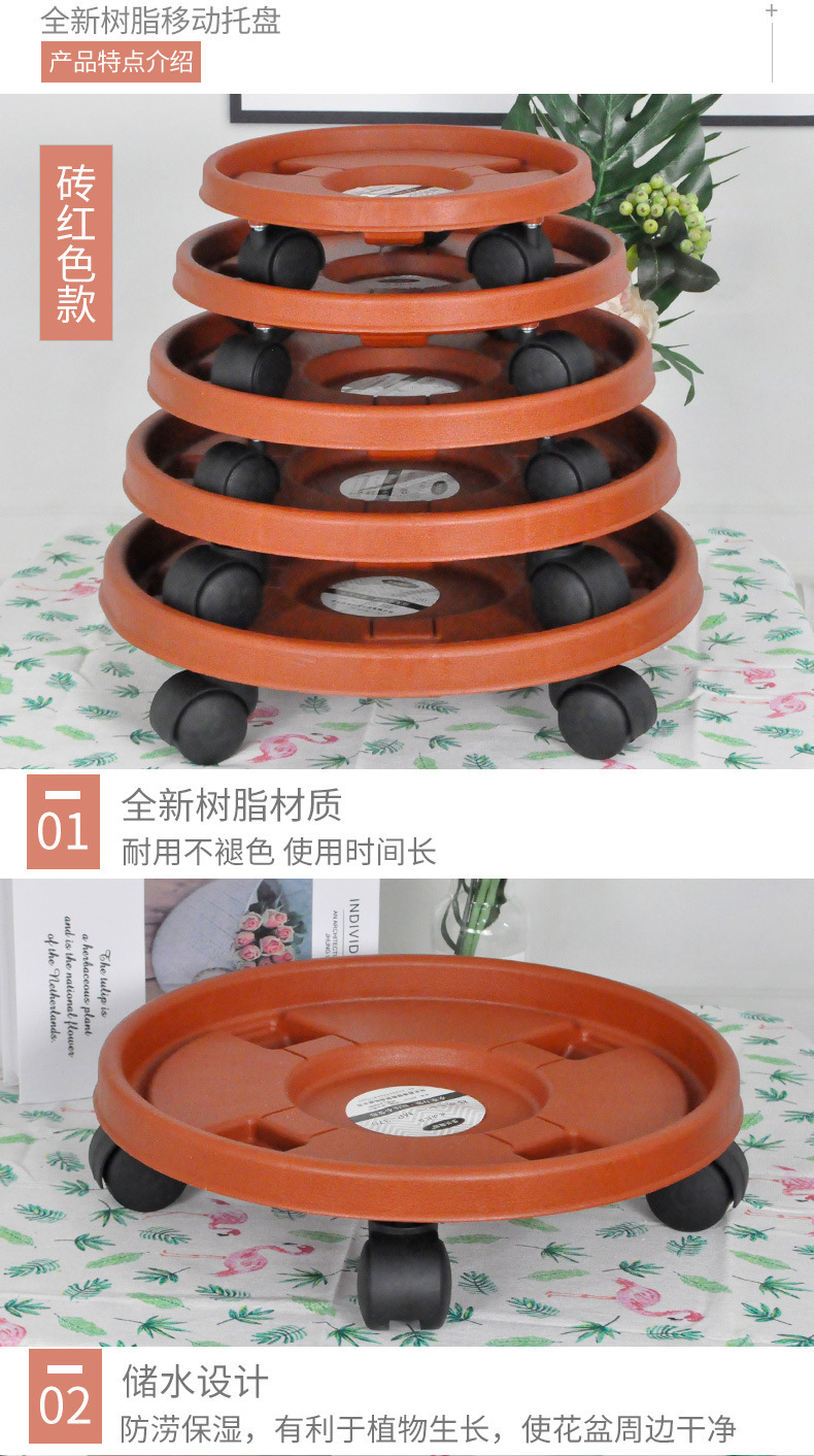 꽃 냄비 트레이 벽돌 빨간색 두꺼운 수지 트레이 바퀴 트레이 유니버설 휠 이동식 트레이 화분베이스