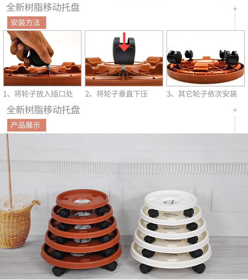 꽃 냄비 트레이 벽돌 빨간색 두꺼운 수지 트레이 바퀴 트레이 유니버설 휠 이동식 트레이 화분베이스스토어 가기