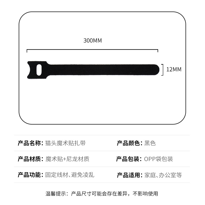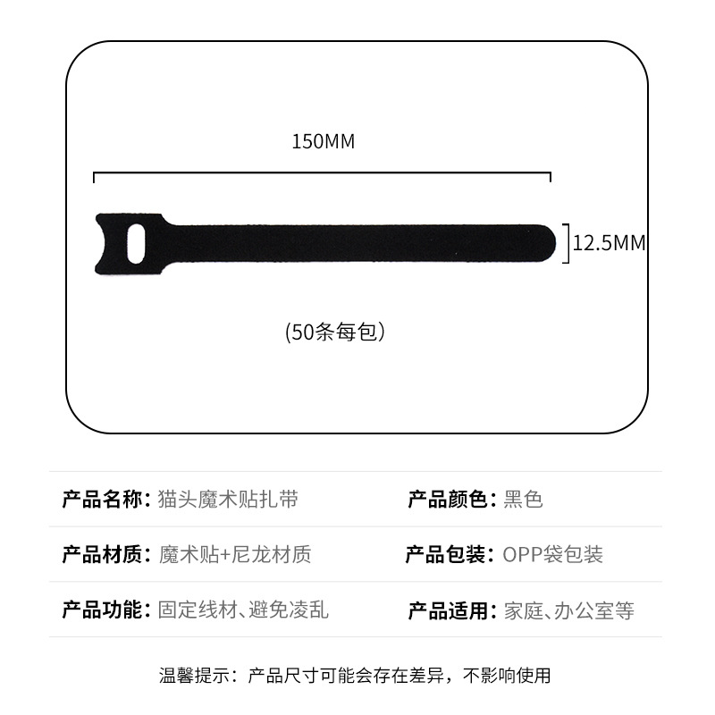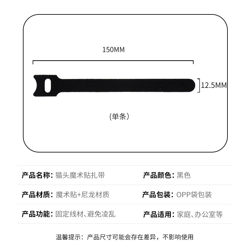 品 名:黑色背靠背绑带 理线带