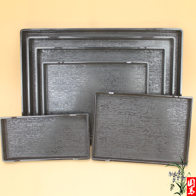 호텔 트레이 직사각형 케이터링 패스트푸드 접시 두꺼운 유럽식 모조 도자기 검정색 멜라민 나무 무늬 트레이스토어 가기