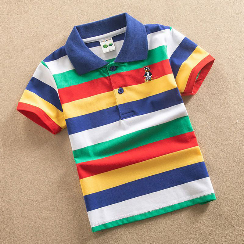 아동복 큰 아동용 반팔 티셔츠 여름 의류 소년 소녀 스트라이프 폴로 셔츠 스트레치 코튼 라운드 넥 티셔츠 0-16 세