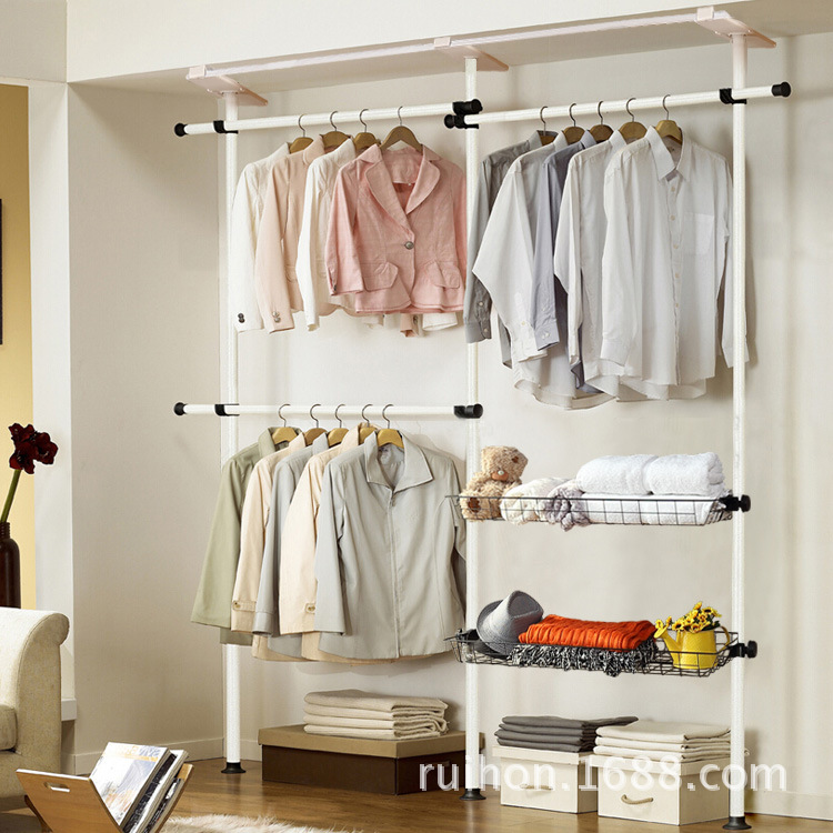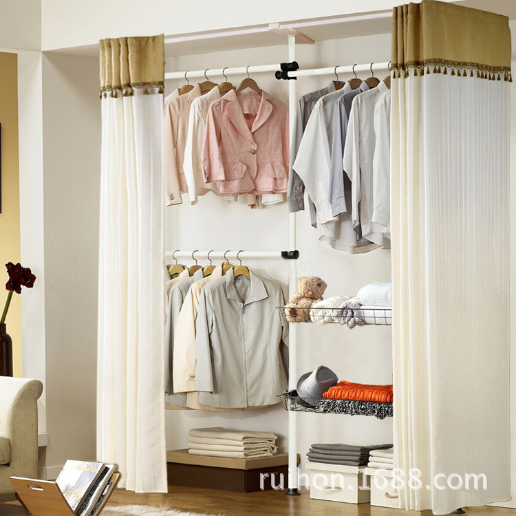 顶天立地衣架落地卧室开放式简易衣帽间置物架子组装衣柜衣帽架挂