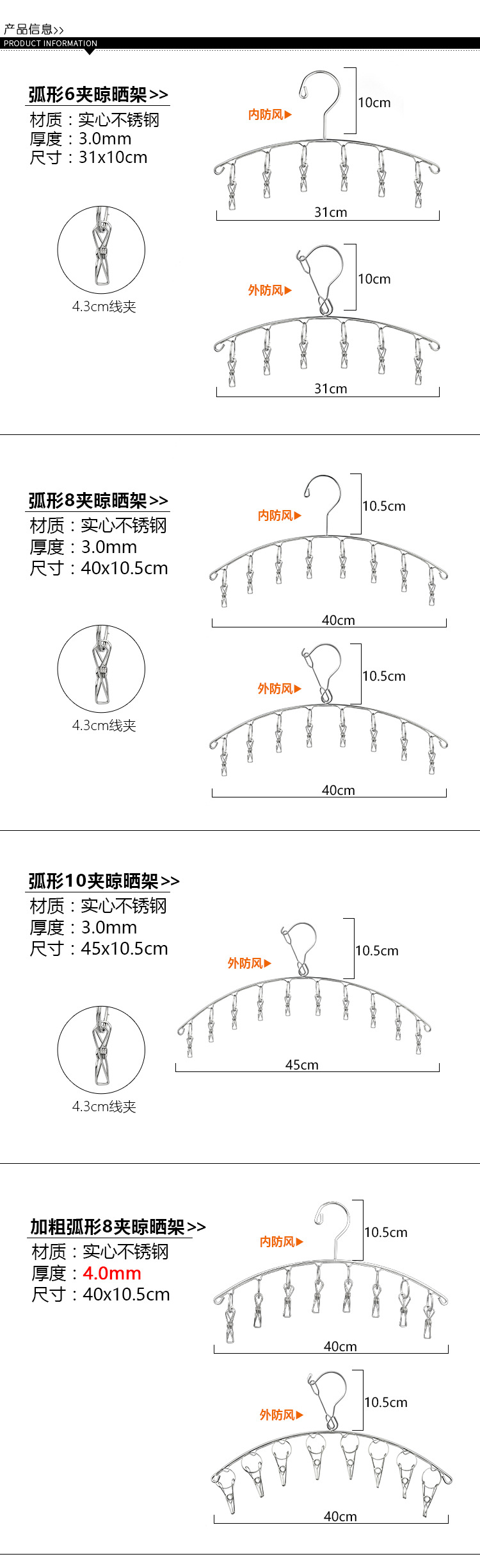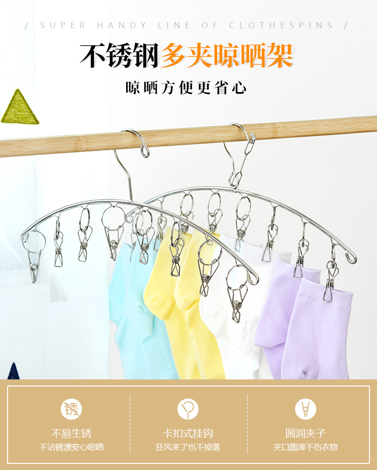 스테인레스 스틸 건조 행거 아크 6/8/10 양말 랙 건조 랙 스테인레스 스틸 클립 방풍 걸이