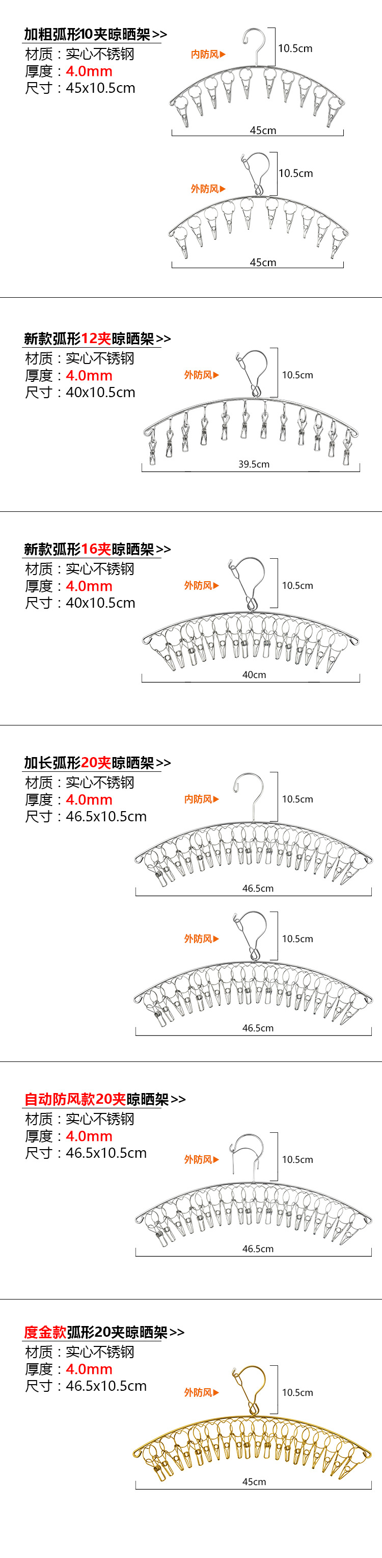 스테인레스 스틸 건조 행거 아크 6/8/10 양말 랙 건조 랙 스테인레스 스틸 클립 방풍 걸이스토어 가기