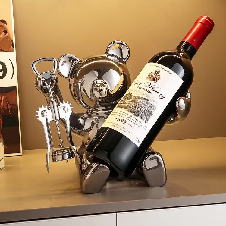 • 폭력적인 곰 와인 랙 - 병따개 [전기도금 은]에는 와인병이 포함되어 있지 않습니다.