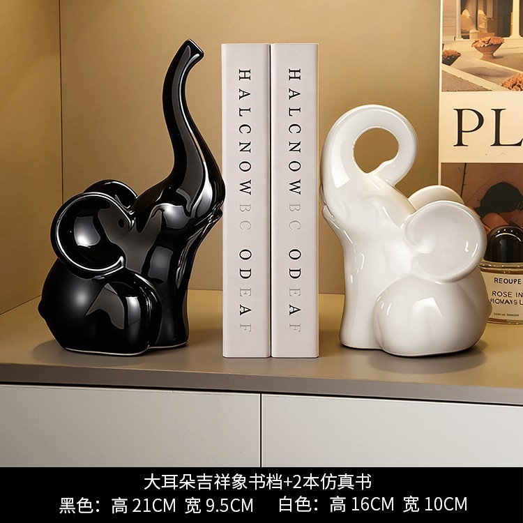 • 검은색과 흰색 큰 귀 코끼리 북엔드 + 임의의 색상으로 시뮬레이션된 책 2권